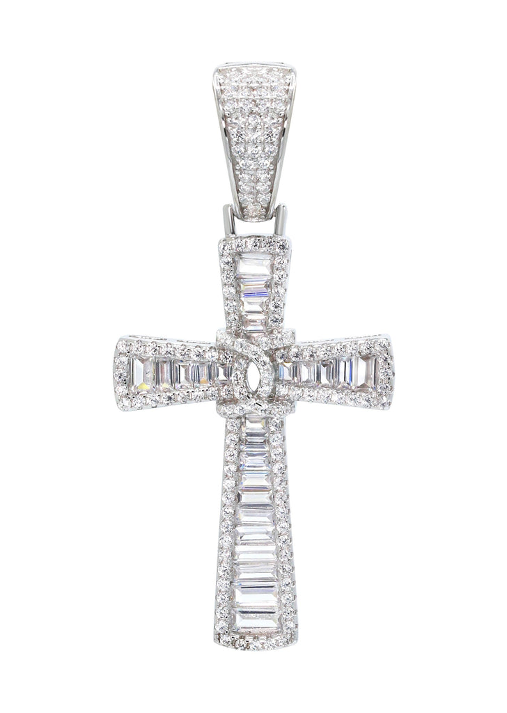 Silver Pendant - White Gold Cross Baguette Pendant | Appx 5 Grams