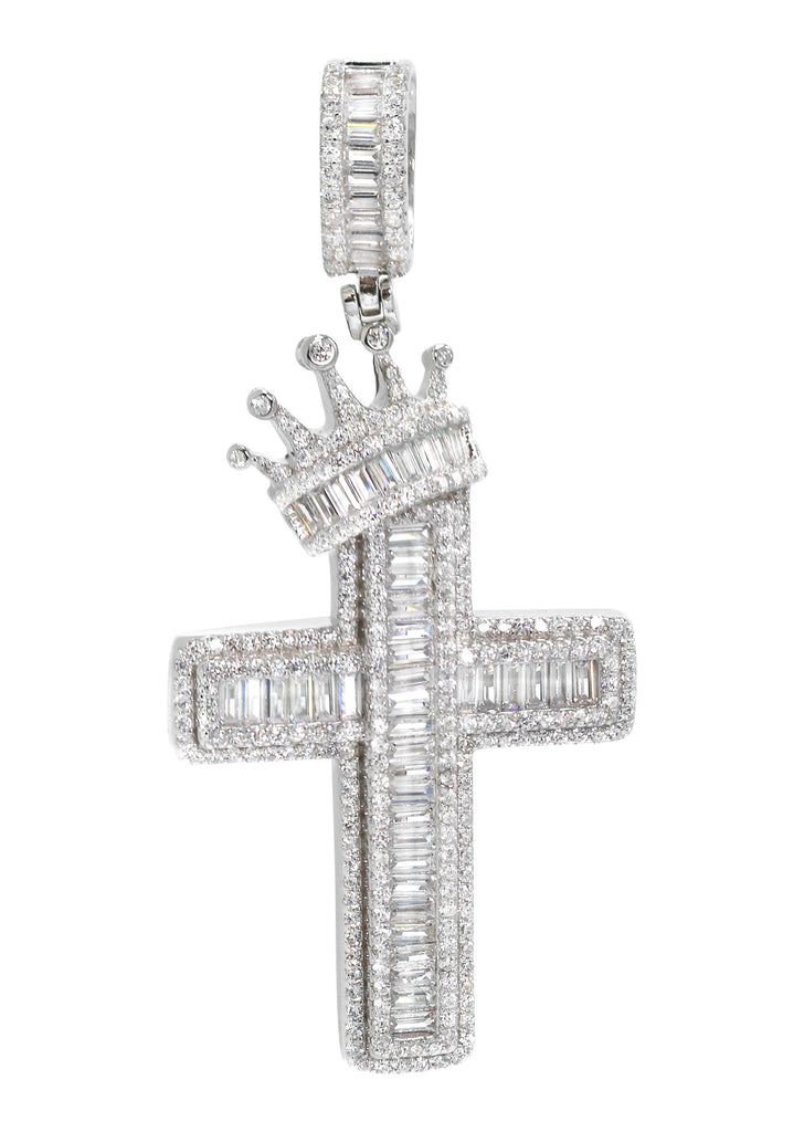 Silver Pendant - Silver Crown Cross Baguette Pendant | Appx 9.4 Grams