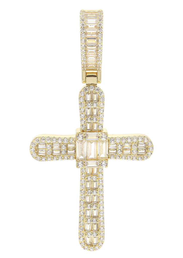 Silver Pendant - Gold Cross Baguette Pendant | Appx 11 Grams