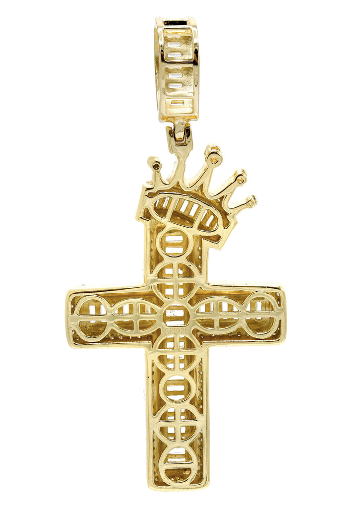 Silver Pendant - Gold Crown Cross Baguette Pendant | Appx 9.5 Grams