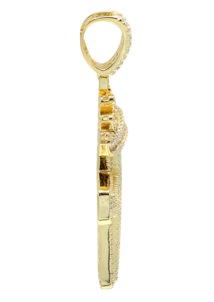 Pure Silver (925) CZ Gold Toned Crown Baguette Pendant with 14K Gold bonded 6 times to provide optimum quality. Weighs approximately 9.5 Grams.