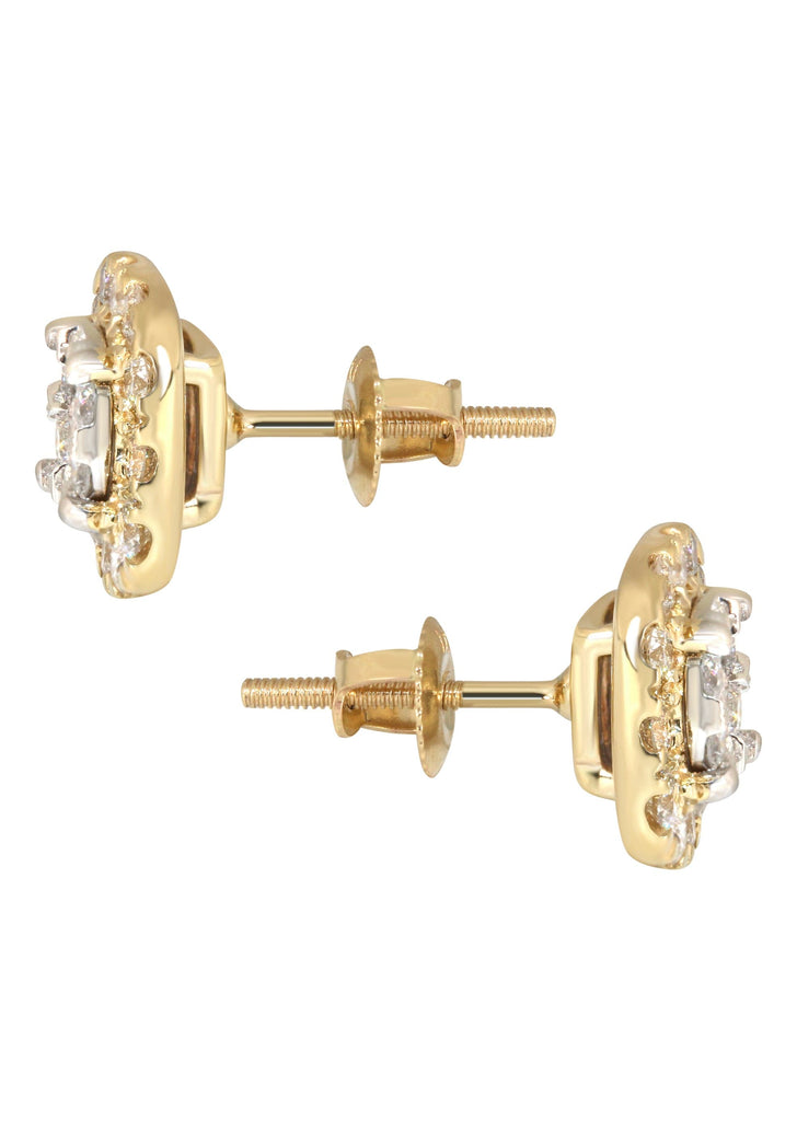 Diamond Stud Earrings In 14K Yellow Gold With Approximately 1.03 Carats Of Diamonds. Earrings Come With An Average Length Of 0.36 Inches And 0.36 Inches In Width.