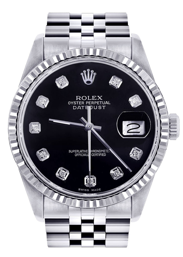 Diamond Mens Rolex Datejust Watch 16200 | 36Mm | Black Arabic Diamond Dial | Jubilee Band