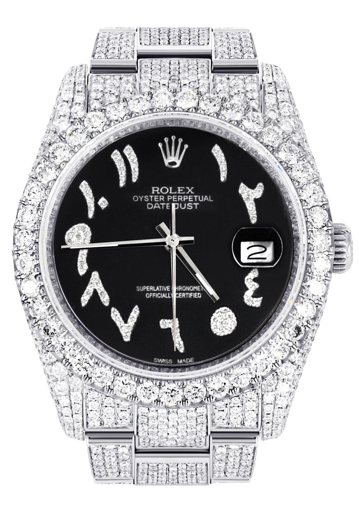 Diamond Iced Out Rolex Datejust 41 | 25 Carats Of Diamonds | Custom Black Roman Numeral Diamond Dial | Two Row | Oyster Band