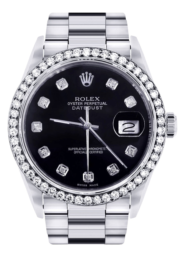 Mens Rolex Datejust Watch 16200 | 36Mm | Black Dial | Two Row 4.25 Carat Bezel | Jubilee Band