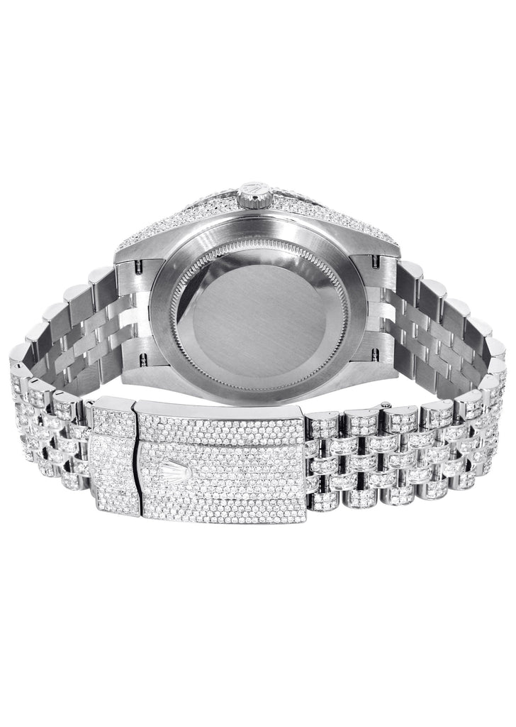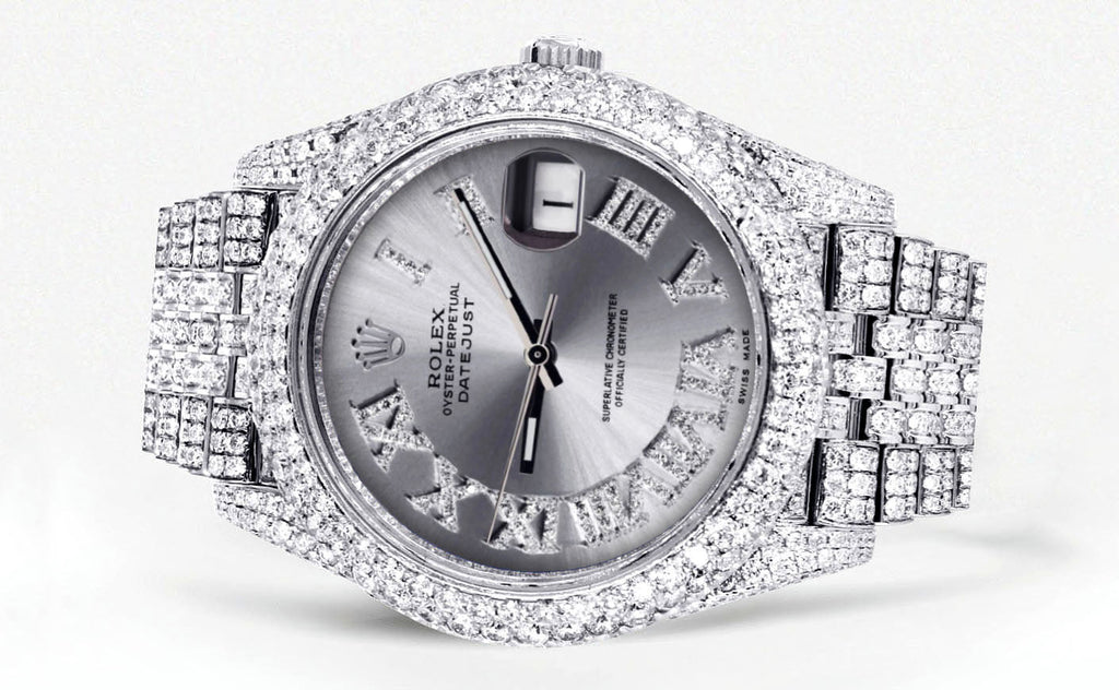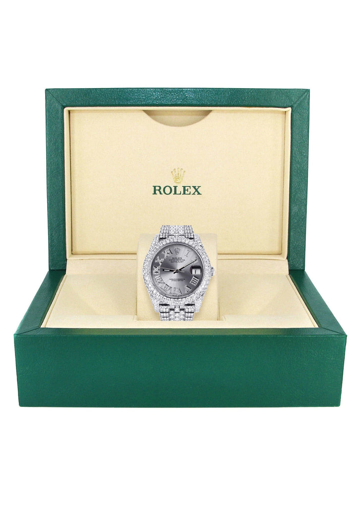 Womens Diamond Iced Out Rolex Datejust 41 | 25 Carats Of Diamonds | Custom Silver Roman Numeral Diamond Dial | Two Row | Jubilee Band