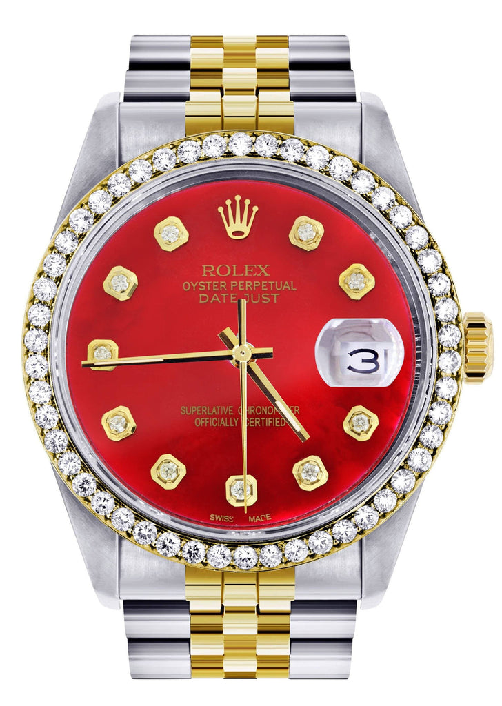 Gold & Steel Rolex Datejust Watch 16233 for Men | 36Mm | Diamond Red Roman Dial | Jubilee Band