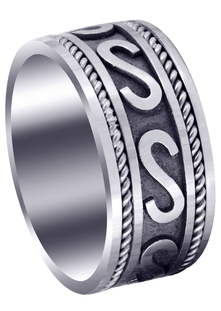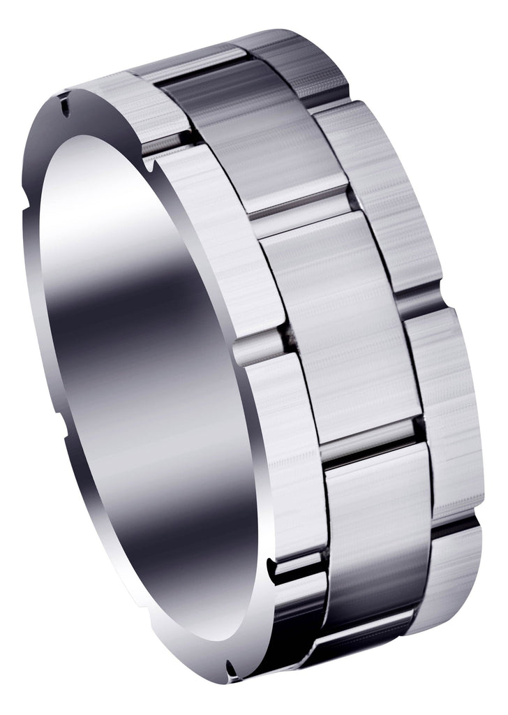Ultra Fancy Milled Design Mens Wedding Band | Satin / High Polish Finish (Anthony)