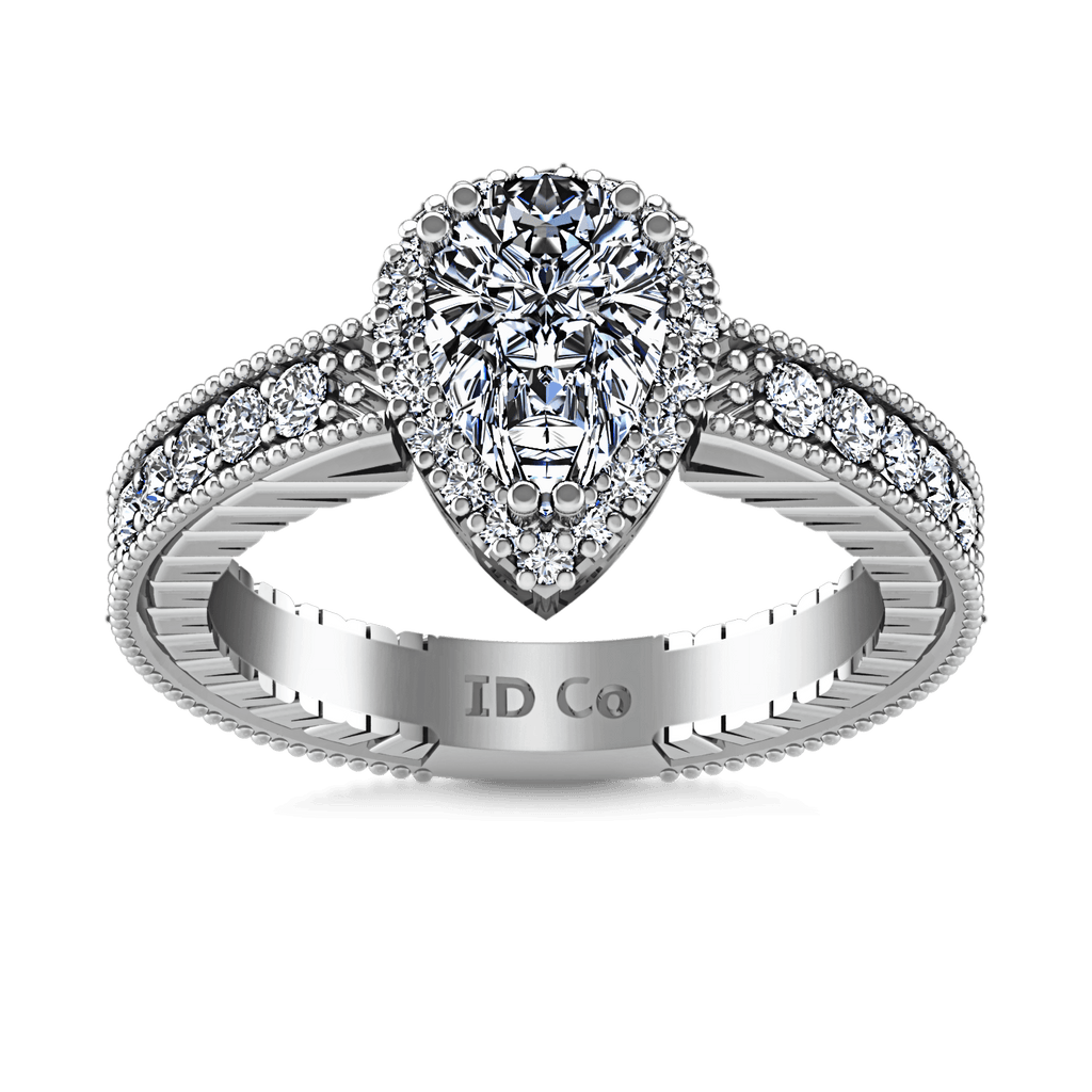 Halo Pear Diamond Engagement Ring Candence 14K White Gold