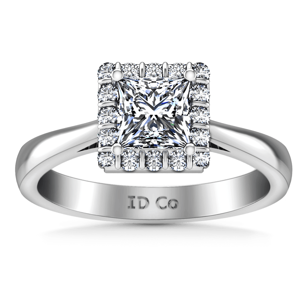 Halo Princess Cut Diamond Engagement Ring Lumiere 14K White Gold