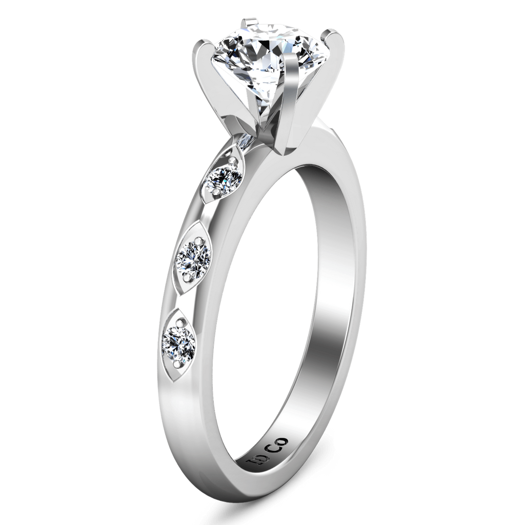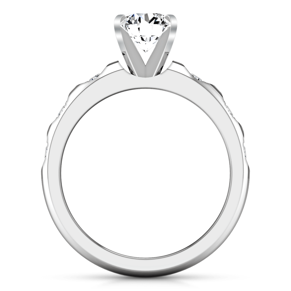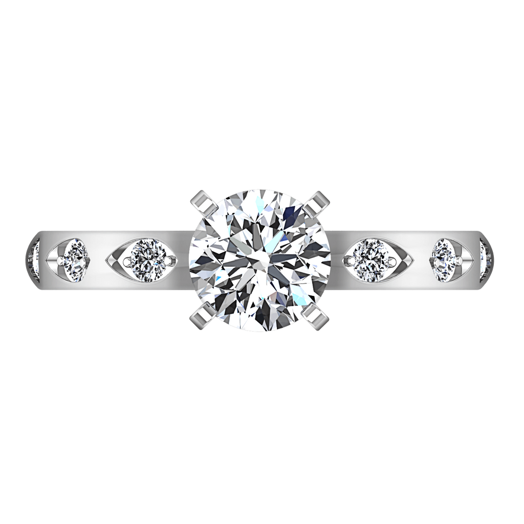 This ring is dazzling and fancy featuring brilliant cut diamonds set into the mounting for a festive look. Featured with 0.12 carats of pave diamonds in 14k white gold with an average width of 2mm . This ring is fully customizable, so pick your center diamond size, color and clarity and we will custom build it for you.