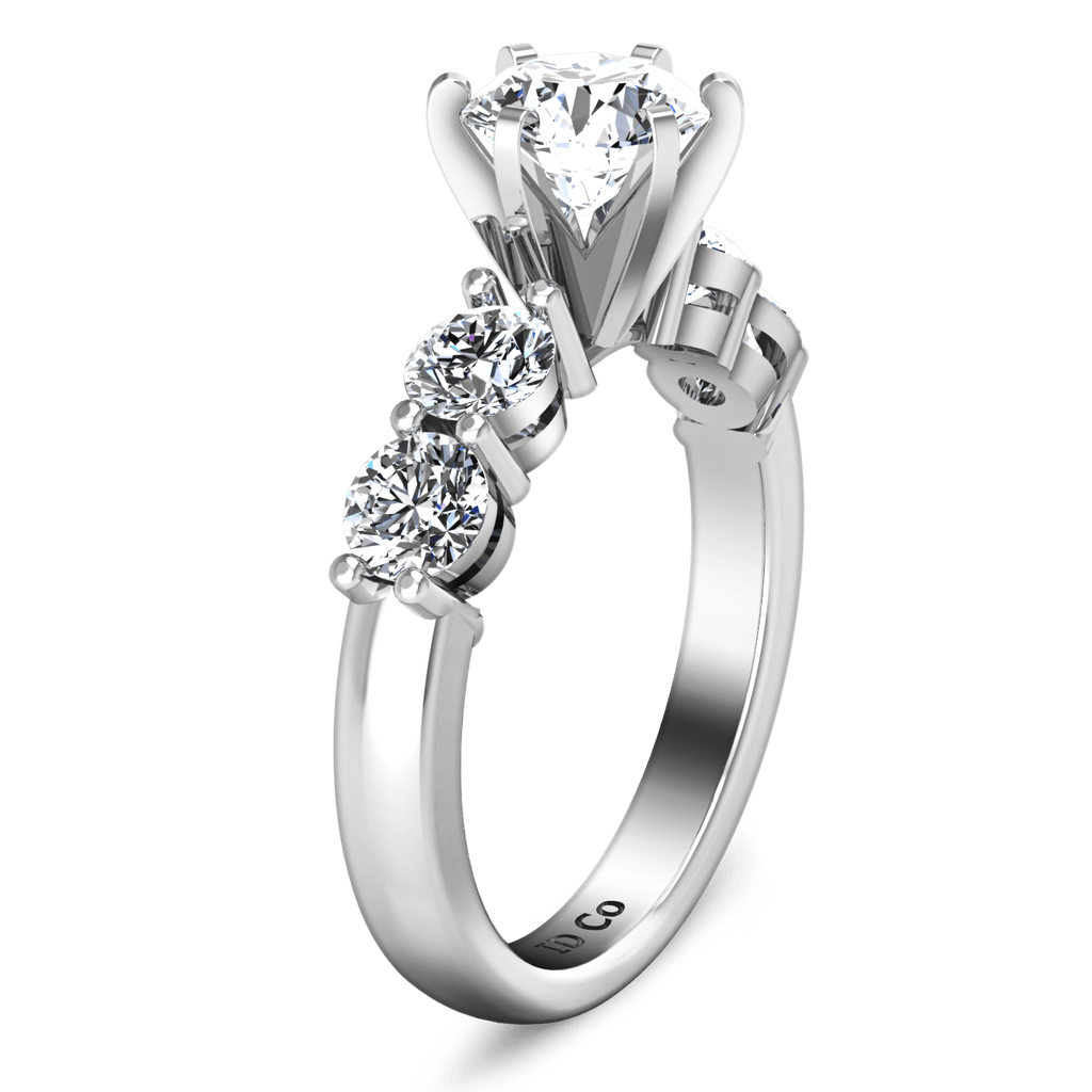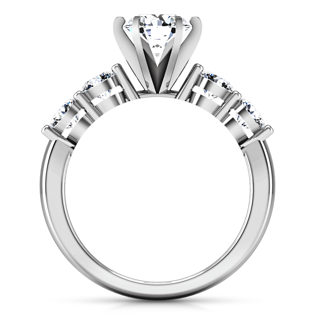 All heads will turn to look at this dazzling and opulent engagemet ring set with two side stones on either side of your sparkling center stone. Featured with 0.28 carats of pave diamonds in 14k white gold with an average width of 2mm . This ring is fully customizable, so pick your center diamond size, color and clarity and we will custom build it for you.