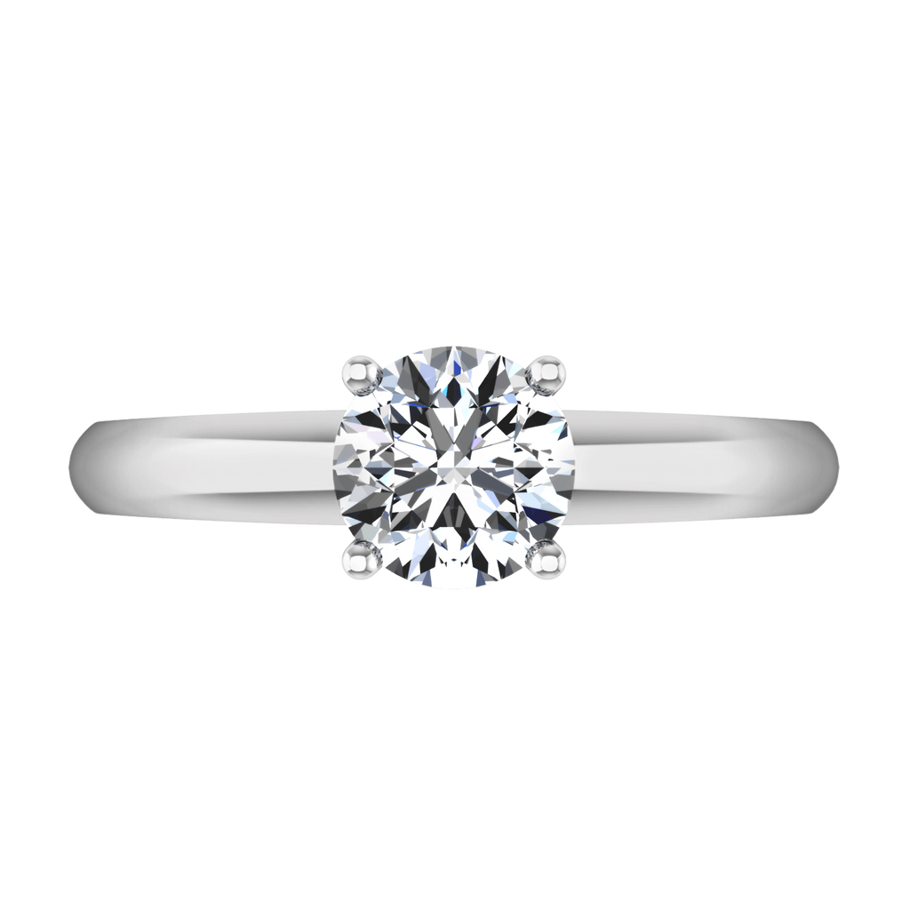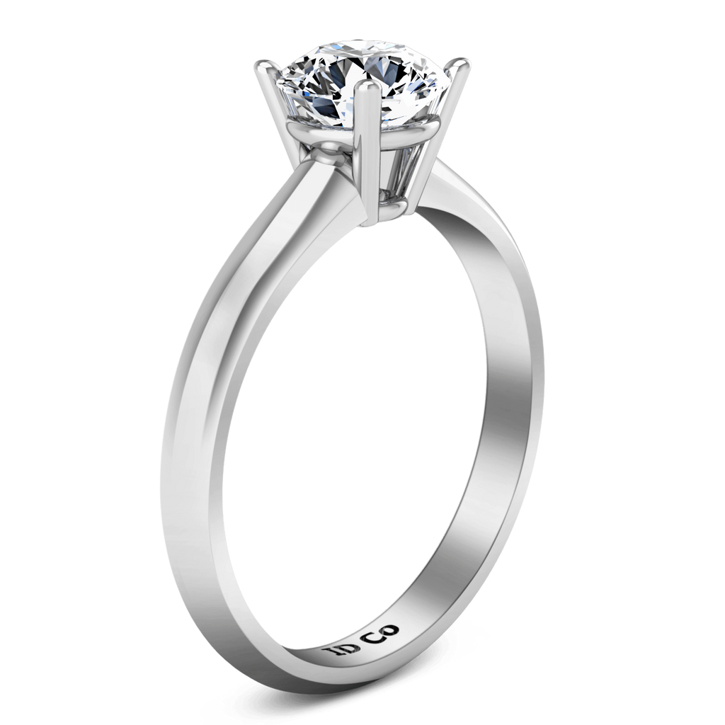 Timeless and graceful this four prong setting will embrace your brilliant center stone. Featured in 14k white gold with an average width of 2mm . This ring is fully customizable, so pick your center diamond size, color and clarity and we will custom build it for you.