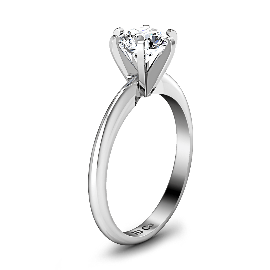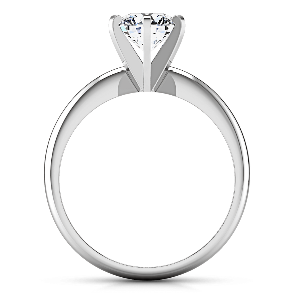This timeless setting features a tapered knife edge shank. Featured in 14k white gold with an average width of 2mm . This ring is fully customizable, so pick your center diamond size, color and clarity and we will custom build it for you.