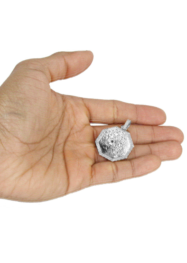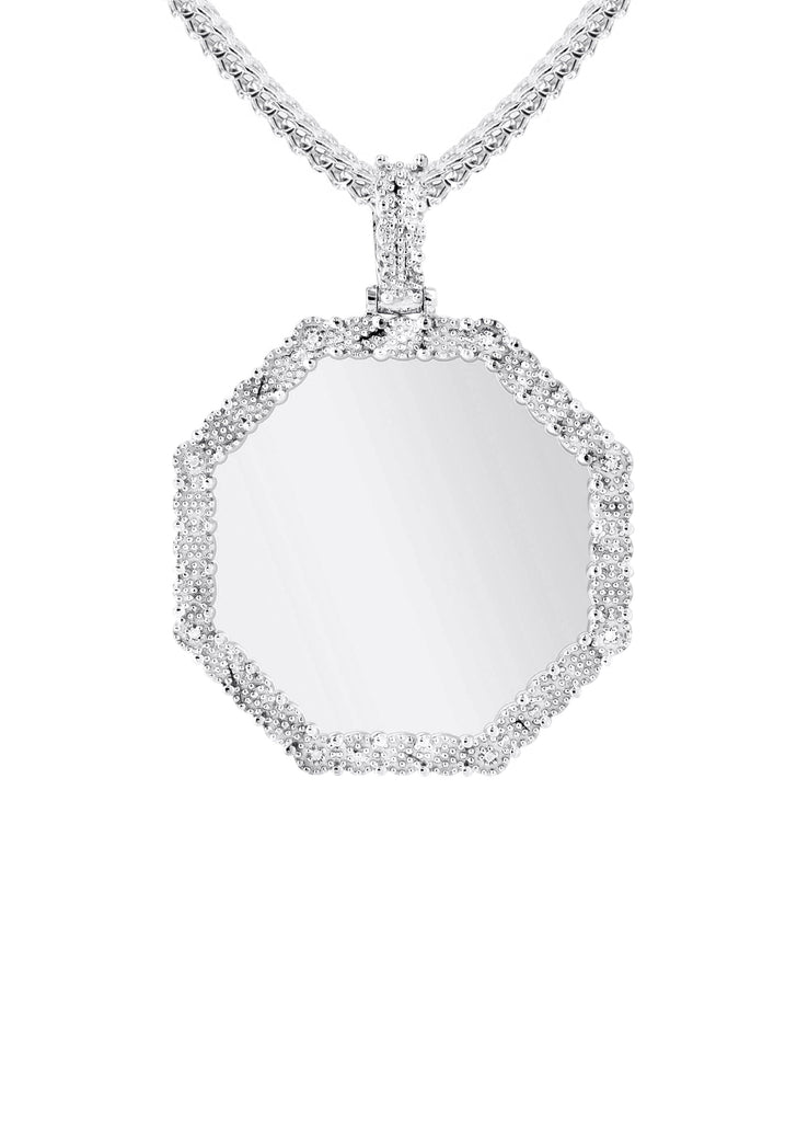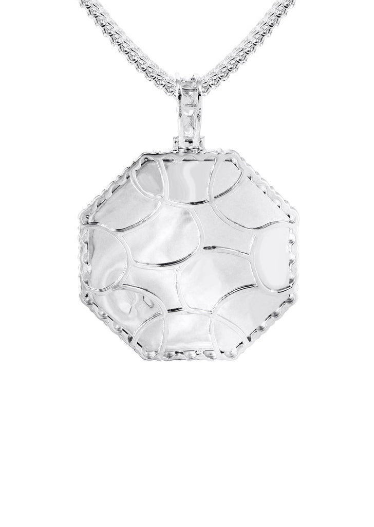 10K White Gold Diamond Octagon Picture Pendant Necklace | Appx. 17 Grams