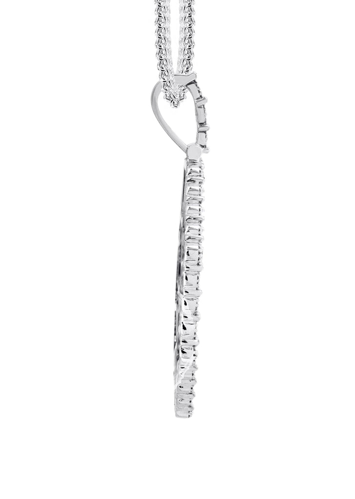 10K White Gold Diamond Picture Pendant Necklace which comes in 1.5 Inches in length and 1.3 Inches in width. The chain options include a 10K gold Cuban chain, Franco or Rope with a width of 3 MM and the length can be selected to any preference. Total Gram Weight Is 17. Pendant weighs 11 grams and the chain weighs approximately 10 Grams.