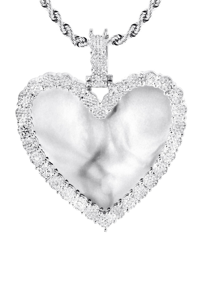 10K White Gold Diamond Picture Pendant Necklace which comes in 1.8 Inches in length and 1.5 Inches in width. The chain options include a 10K gold Cuban chain, Franco or Rope with a width of 3 MM and the length can be selected to any preference. Total Gram Weight Is 24. Pendant weighs 14 grams and the chain weighs approximately 10 Grams. Upon placing order, we will contact you for a picture to put on the pendant. Due to the custom nature of this product, please allow up to 1 week for production. |