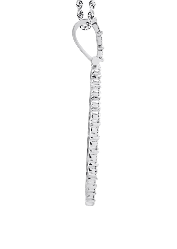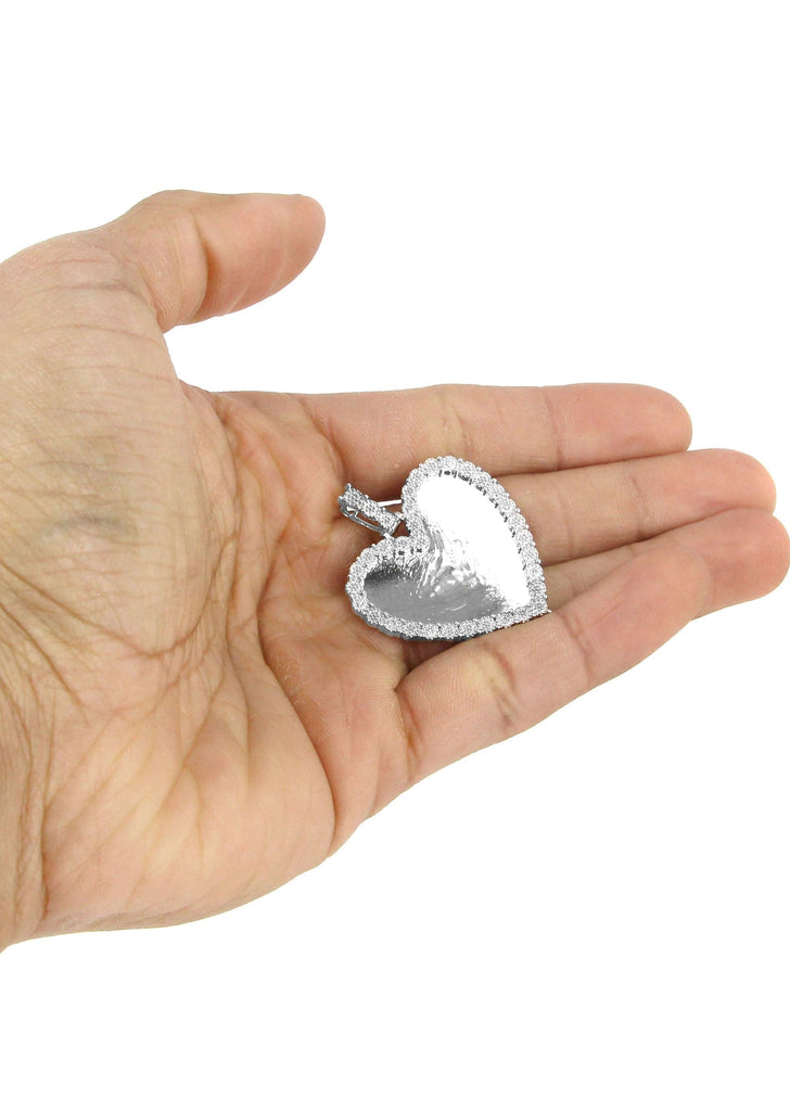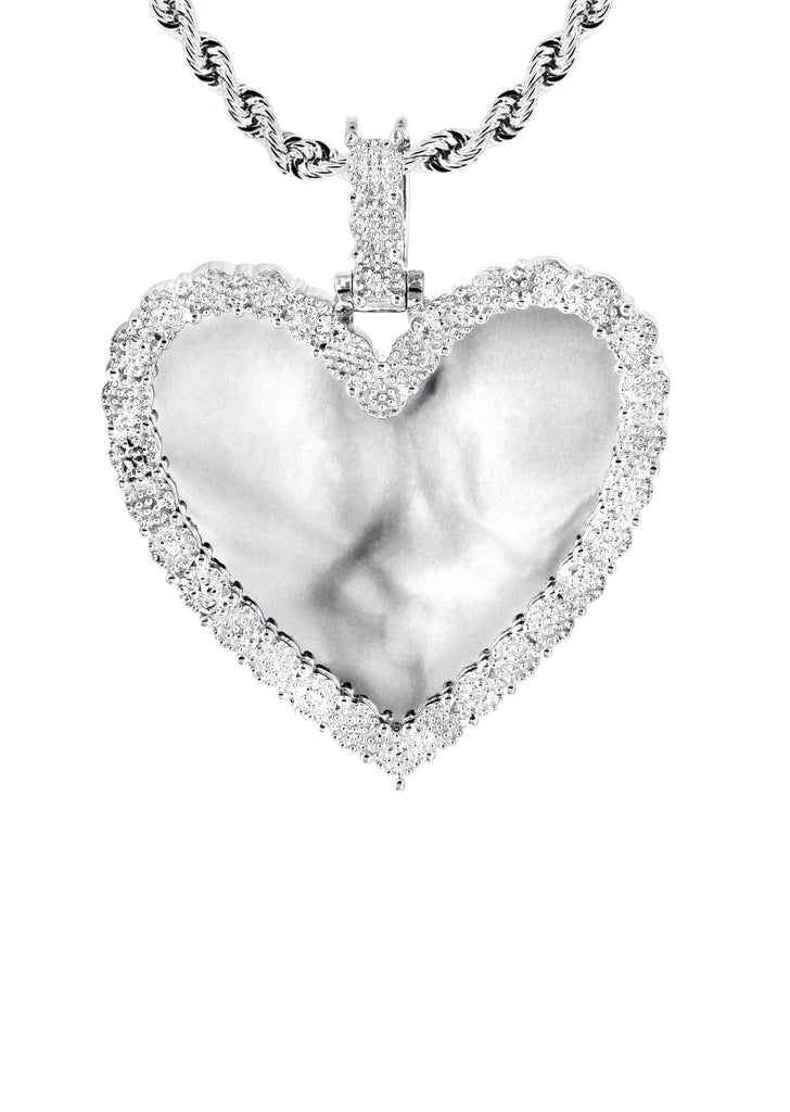 10K White Gold Medium Diamond Heart Picture Pendant Necklace | Appx. 21 Grams