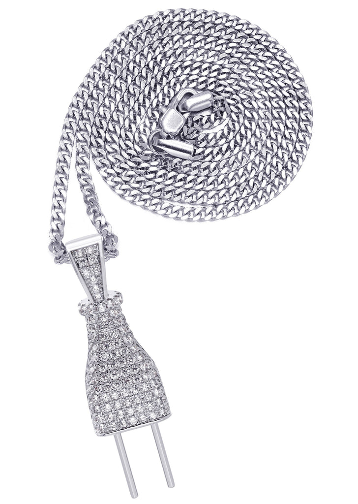 White Gold Plated Cuban Link Chain & Plug Pendant | Appx. 22.7 Grams