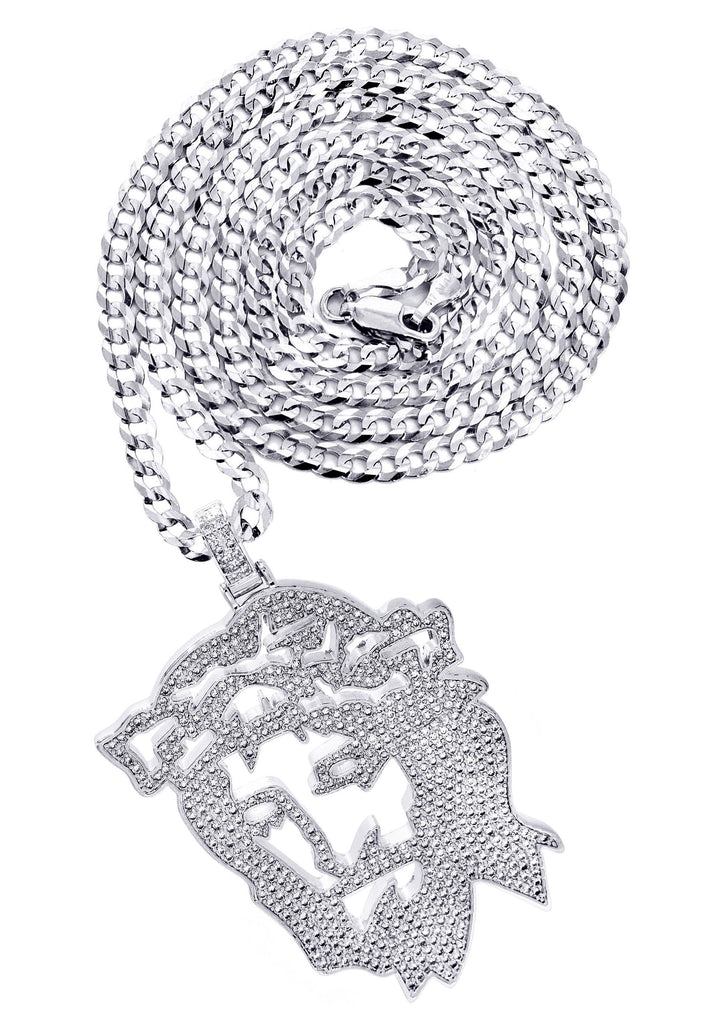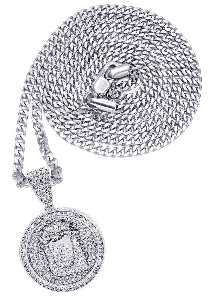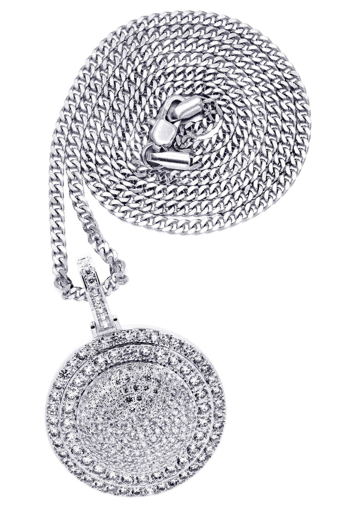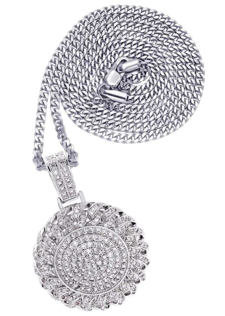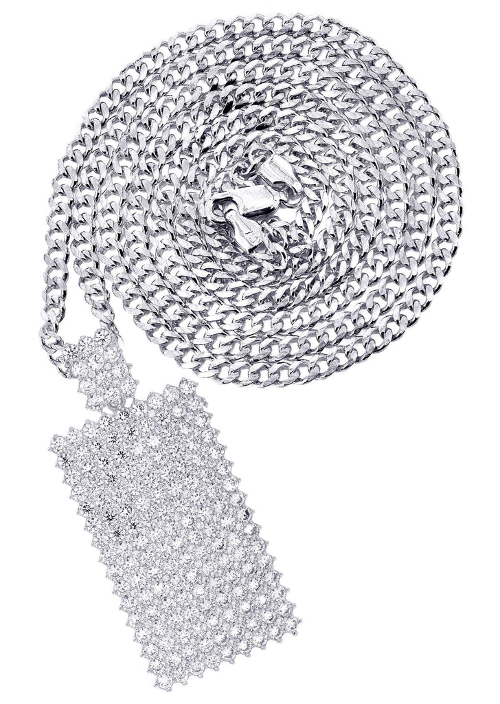 White Gold Plated Cuban Link Chain & Iced Out Pendant | Appx. 16.1 Grams