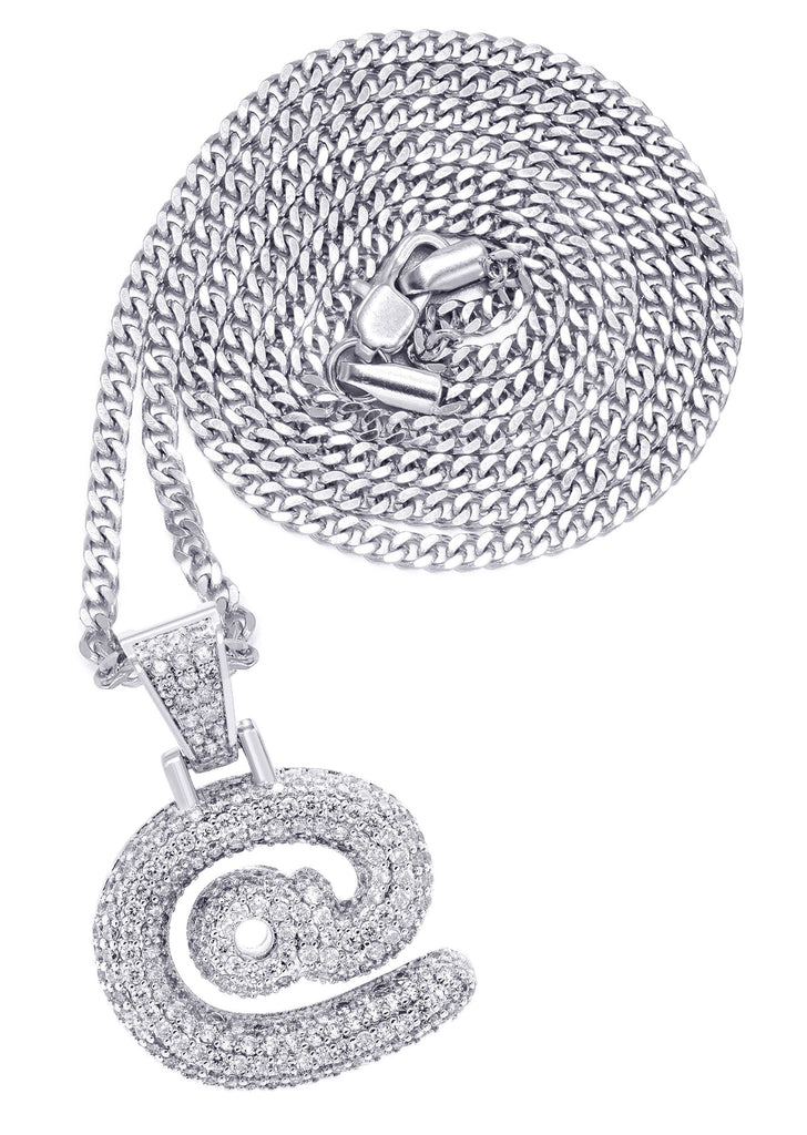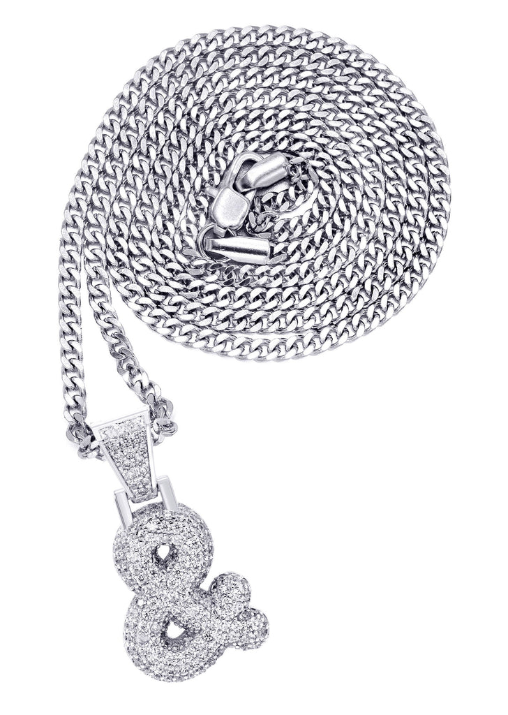 White Gold Plated Cuban Link Chain & @ Pendant | Appx. 18 Grams