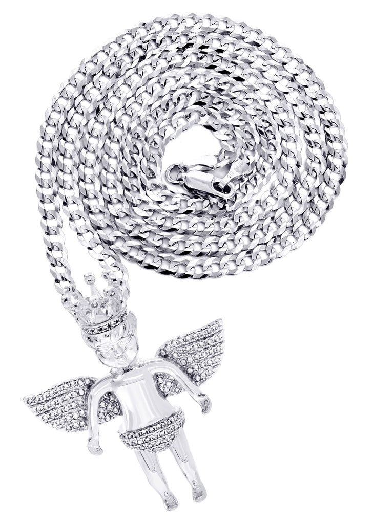White Gold Plated Cuban Link Chain & Angel Pendant | Appx. 16.3 Grams
