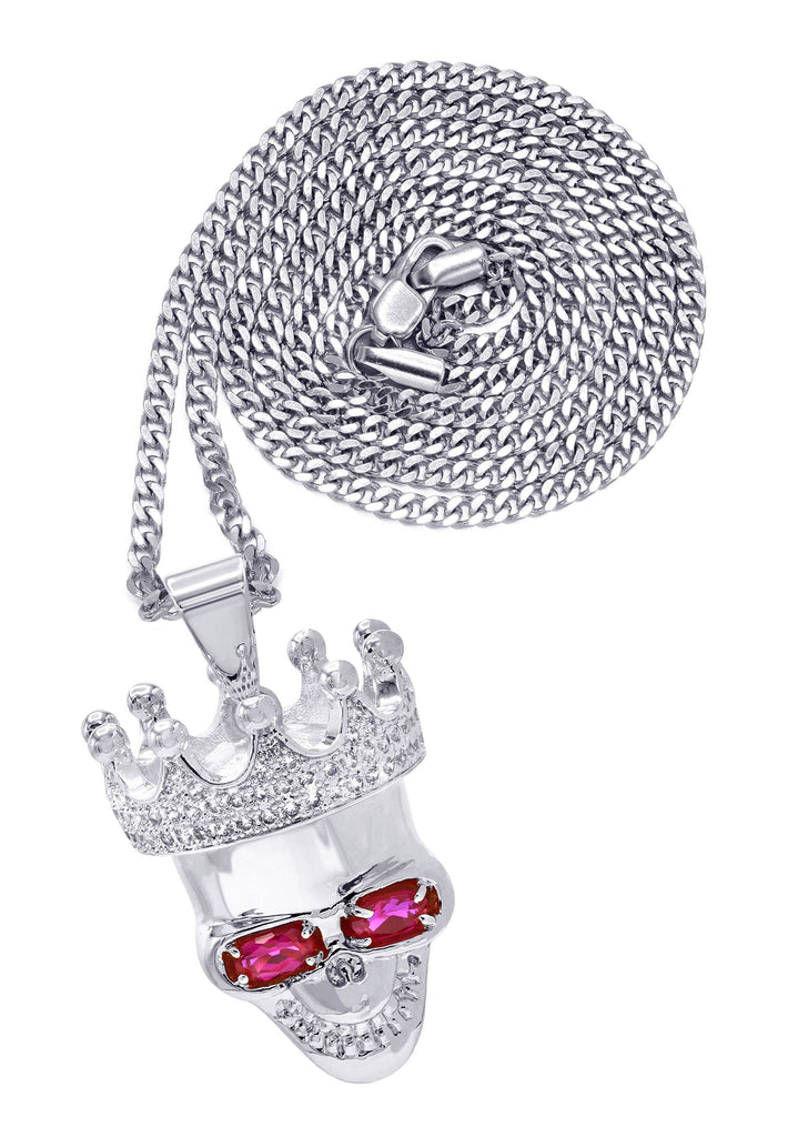 White Gold Plated Cuban Link Chain & Skull Pendant | Appx. 21 Grams
