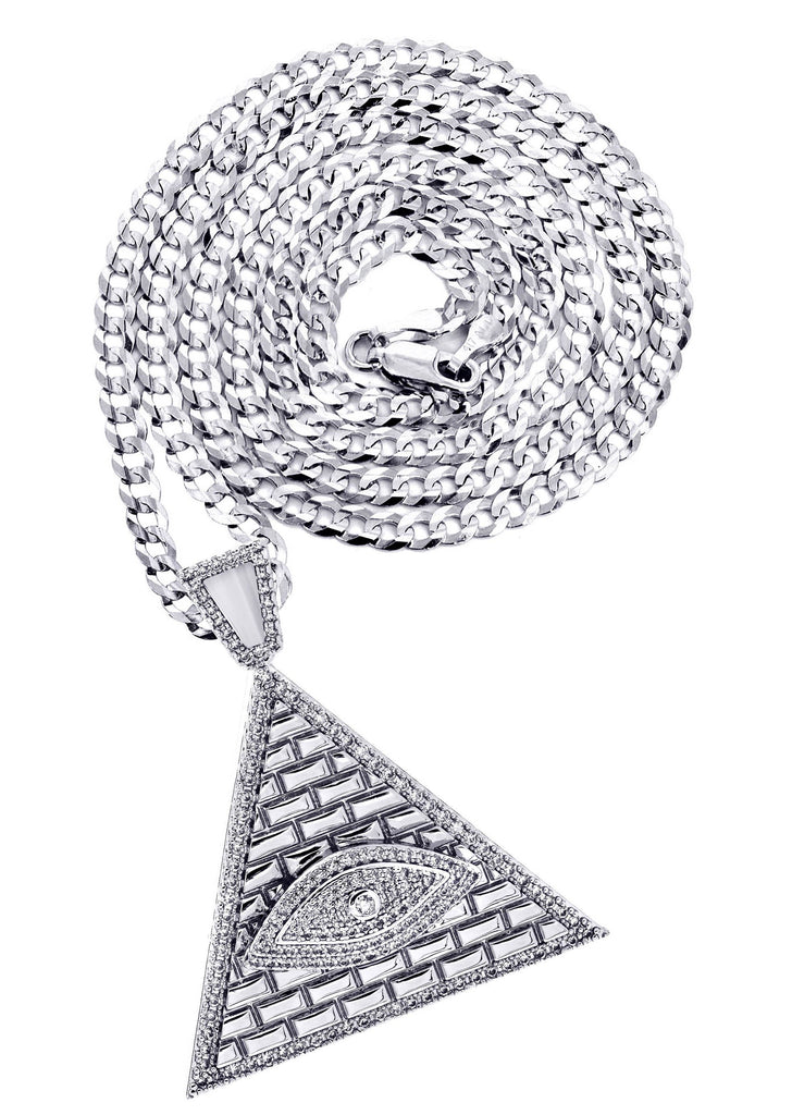 White Gold Plated Cuban Link Chain & Illuminate Pendant | Appx. 27.3 Grams