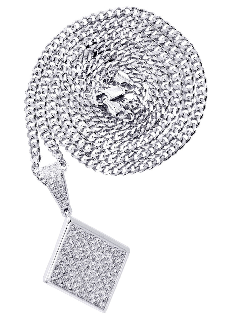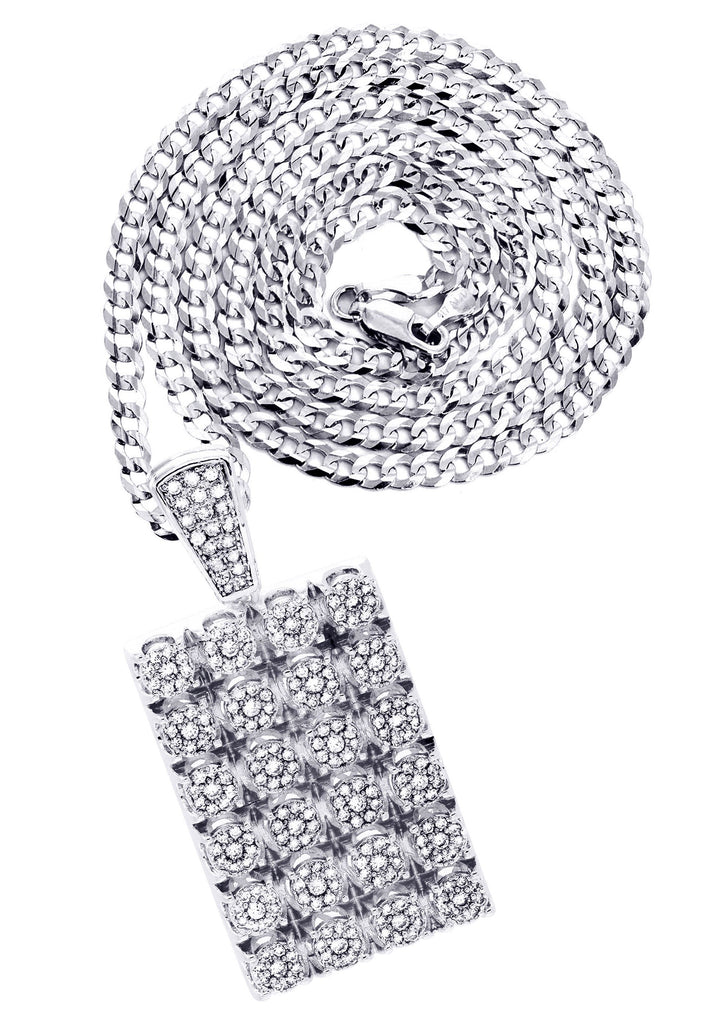 White Gold Plated Cuban Link Chain & Cubic Zirconia Pendant | Appx. 16.3 Grams
