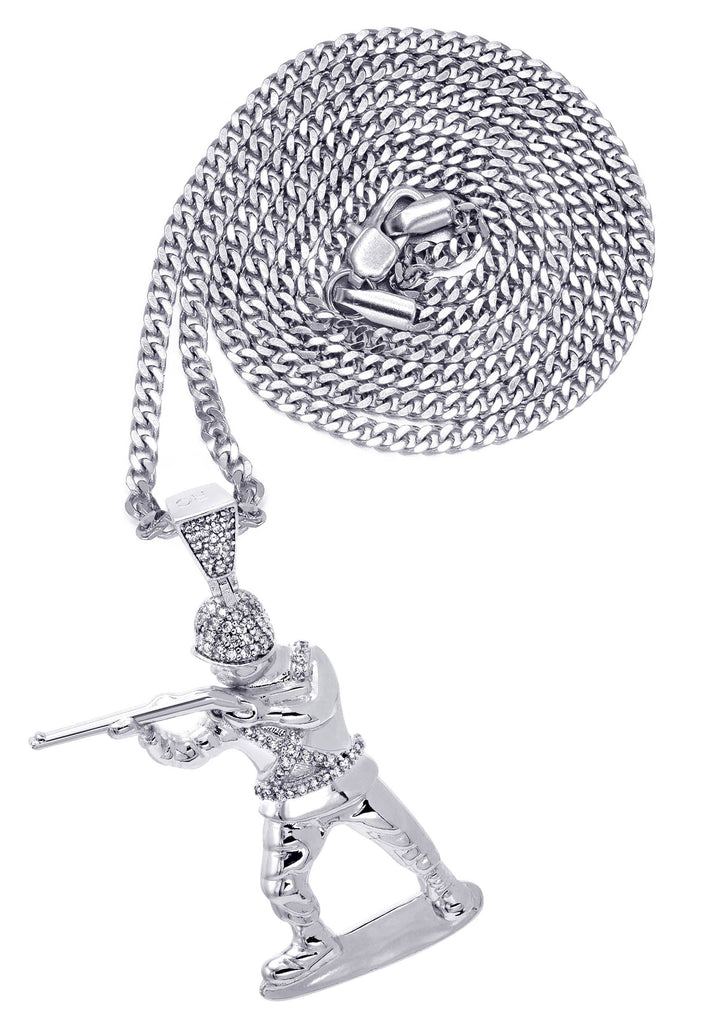 White Gold Plated Cuban Link Chain & Soldier Pendant | Appx. 14.3 Grams