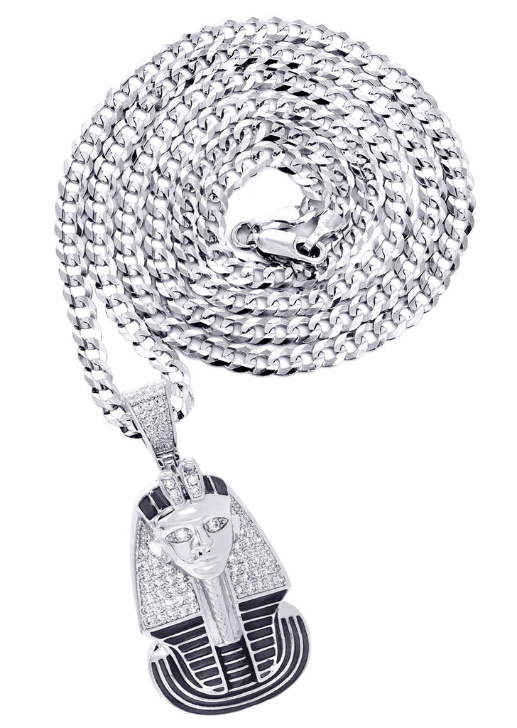 White Gold Plated Cuban Link Chain & Pharaoh Pendant | Appx. 16 Grams