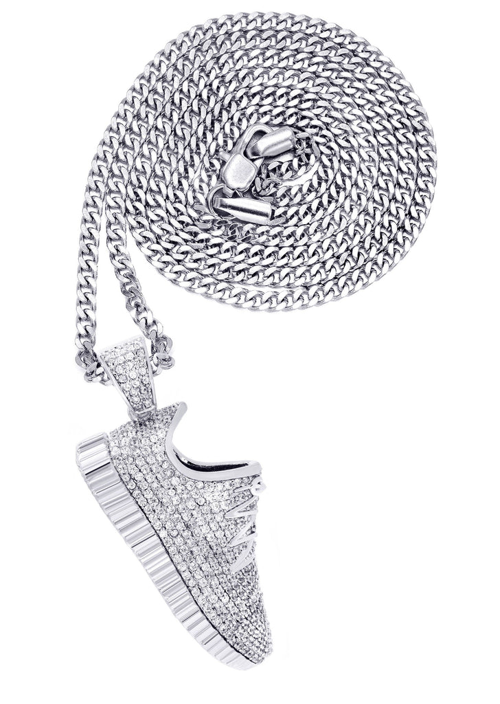 White Gold Plated Cuban Link Chain & Sneaker Pendant | Appx. 30.9 Grams