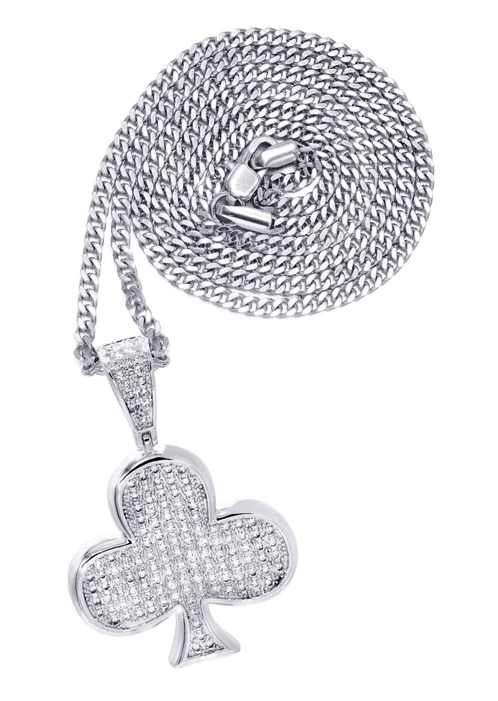 White Gold Plated Cuban Link Chain & Trebol Pendant | Appx. 18.8 Grams