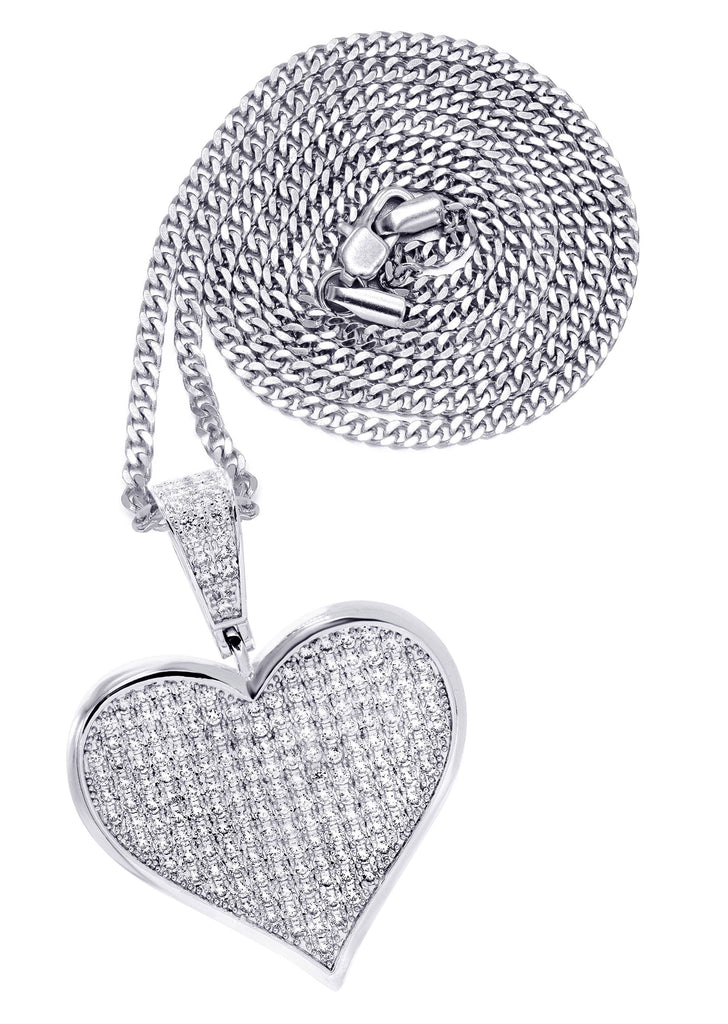 White Gold Plated Cuban Link Chain & Heart Pendant | Appx. 19.5 Grams