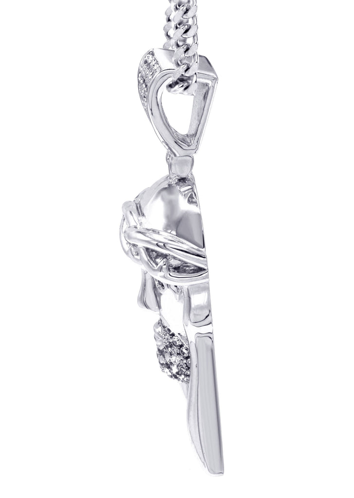White Gold Plated Cuban Link Chain & Jesus Head Pendant | Appx. 20.1 Grams
