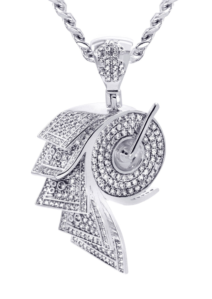 White Gold Plated Cuban Link Chain & Money Roll Pendant | Appx. 18 Grams