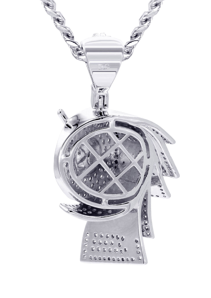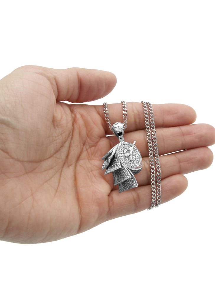 White Gold Plated Cuban Link Chain & Money Roll Pendant Which weighs 18 Grams. The Width Of The Pendant Is 0.9 Inches And The Length Of The Pendant Is 1.7 Inches. The Width Of The Chain Is 3mm And The Length Can Be Adjusted Above.