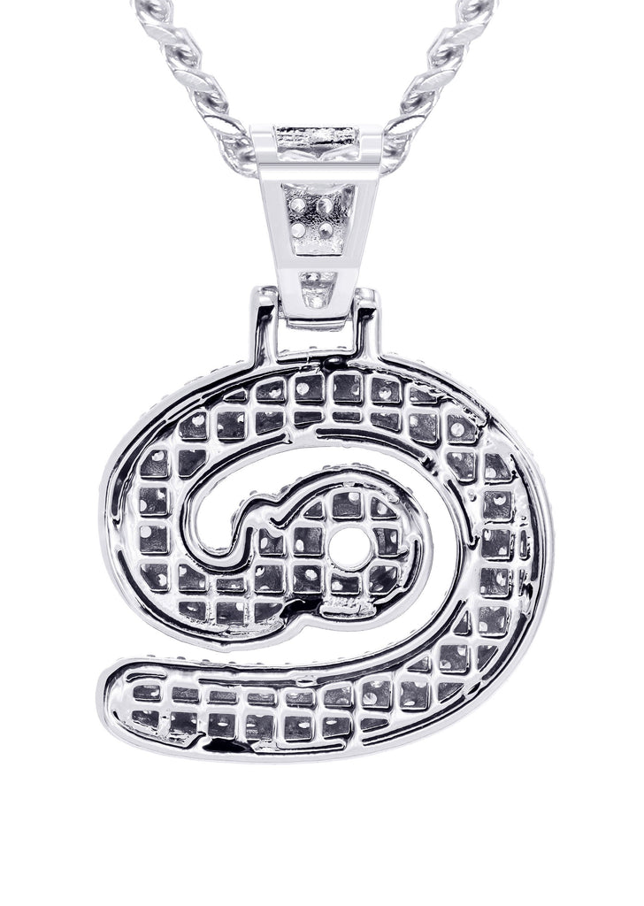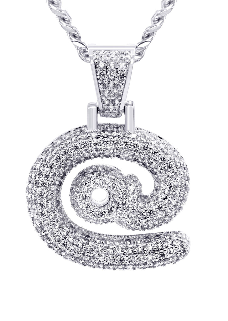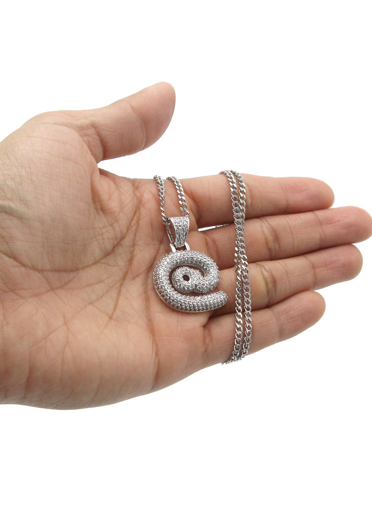 White Gold Plated Cuban Link Chain & @ Pendant | Appx. 18 Grams