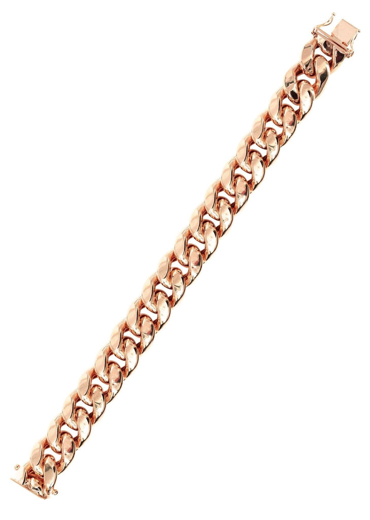 14K Rose Gold Bracelet Semi Solid Miami Cuban Link Women