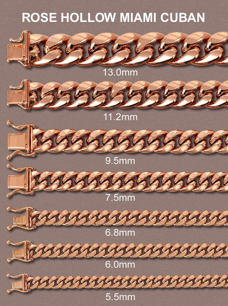 Rose Semi Solid Miami Cuban Bracelet | 14K Rose Gold. This bracelet is fully customizable, so you can pick your length and width above. Once you selected you length and width, you can see the adjusted gram weight above the price.