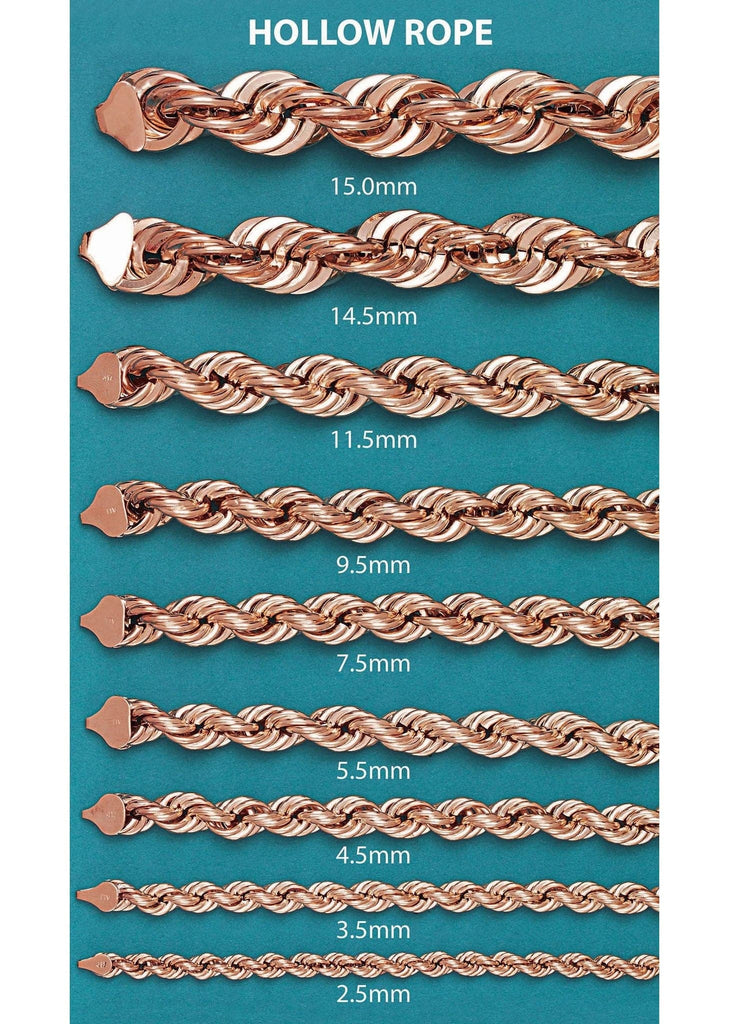 Ladies Semi Solid Rose Rope Chain | 14K Rose Gold. This chain is fully customizable, so you can pick your length and width above. Once you selected your length and width, you can see the adjusted gram weight above the price.