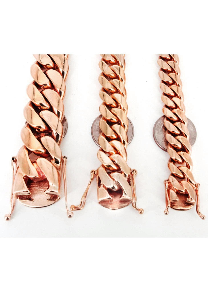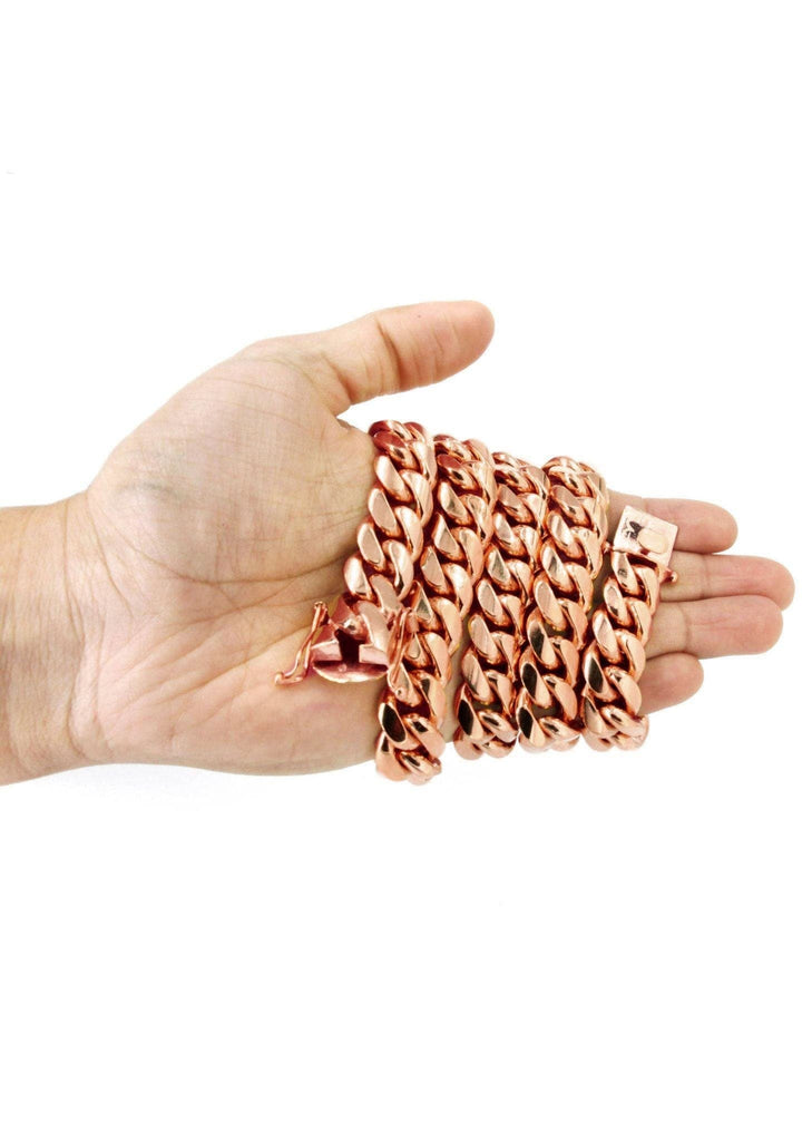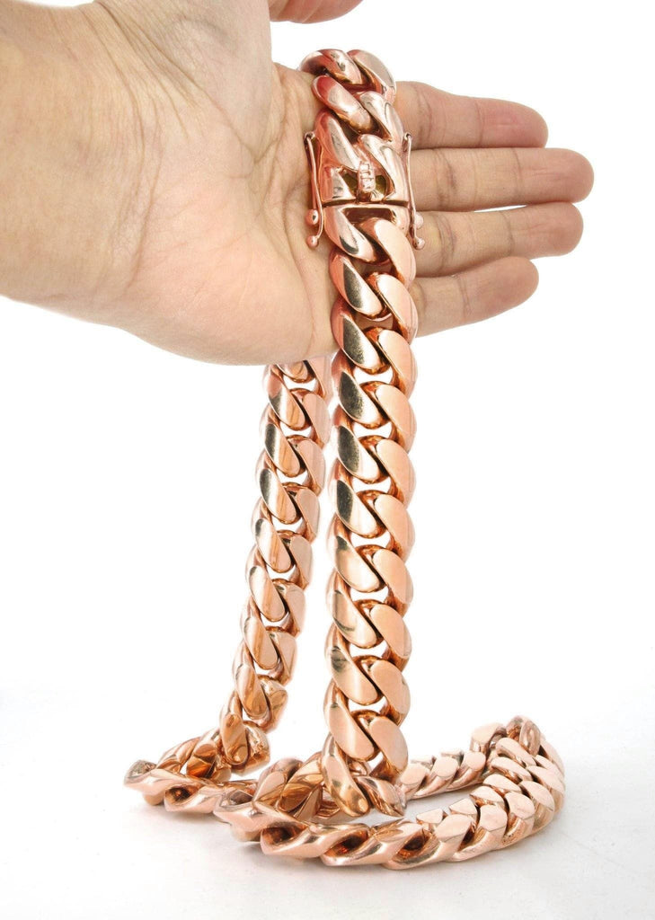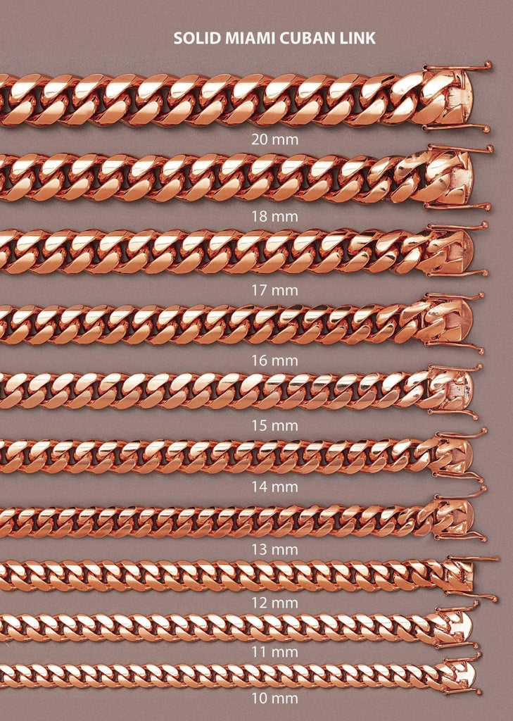 Ladies Heavy Solid Miami Cuban Link Chain | 10K & 14K Rose Gold. This chain is fully customizable, so you can pick your length, width & Karat above. Once you selected your options, you can see the adjusted gram weight above the price.