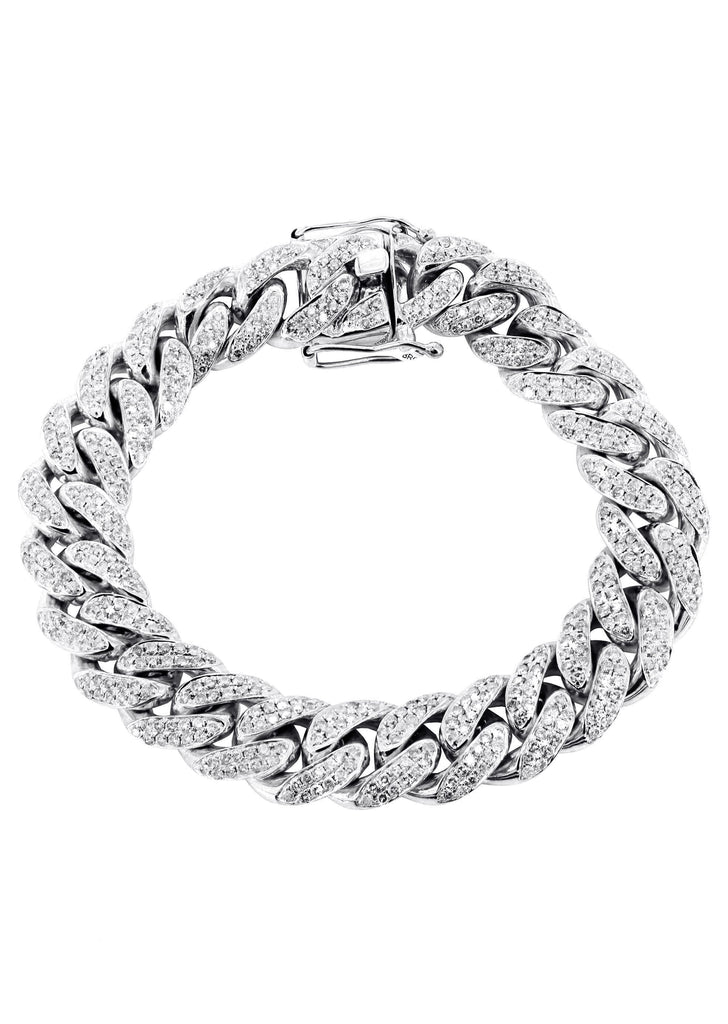 14K White Gold Bracelet Semi Solid Miami Cuban Link For Women