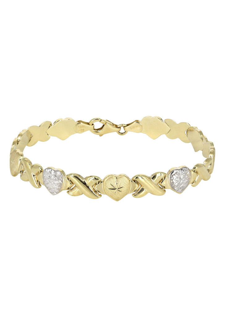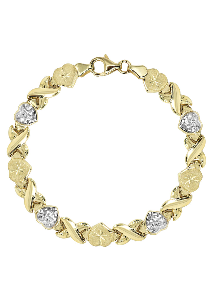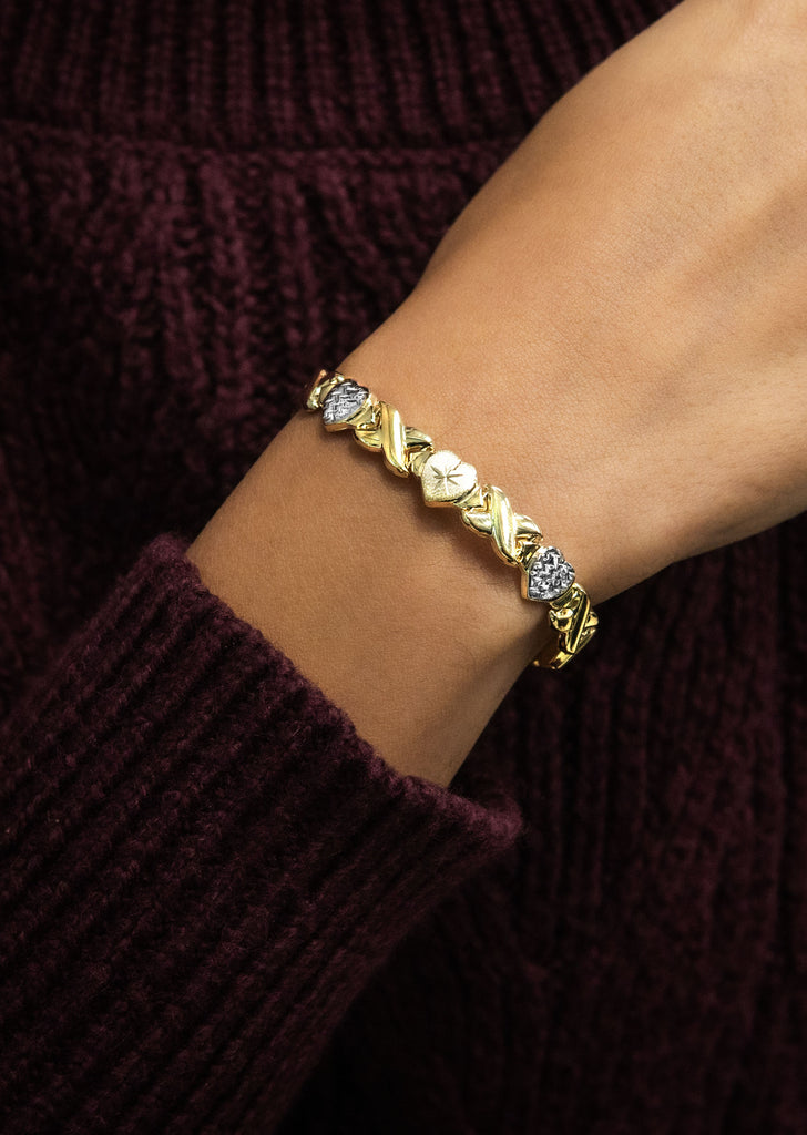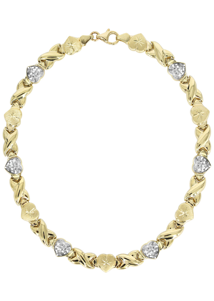 YELLOW GOLD "XO HEART" HOLLOW DIAMOND CUT TWO TONE NECKLACE & BRACELET SET FOR WOMEN | APPX 17.3 GRAMS