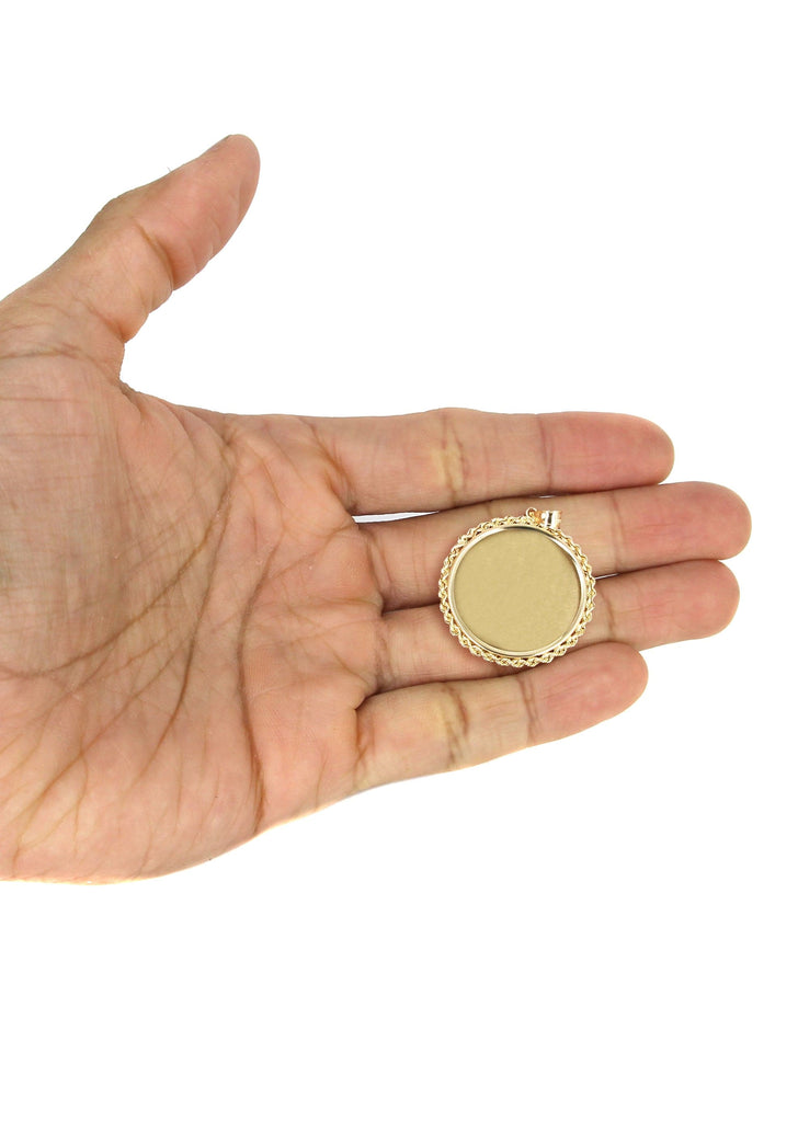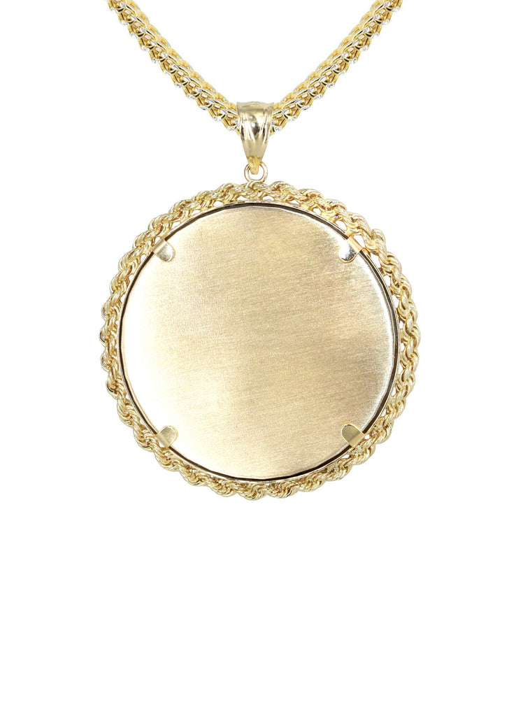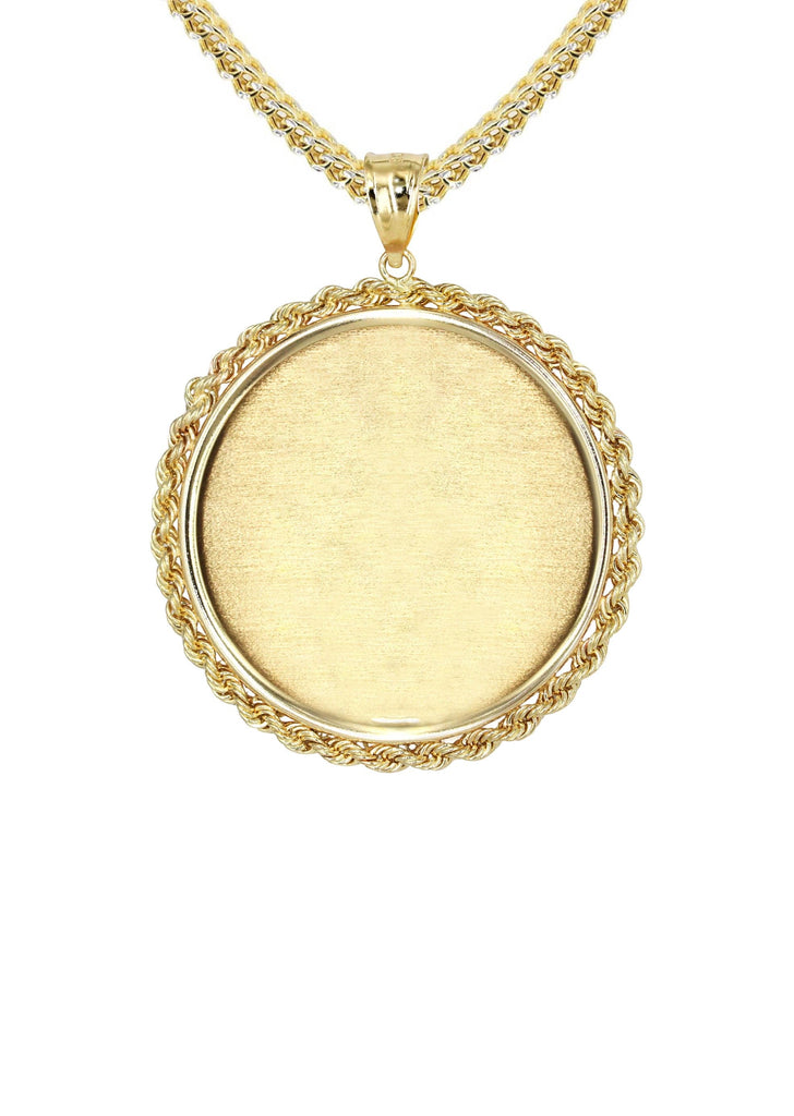 14K Yellow Gold Round Rope Link Picture Pendant Necklace | Appx. 1.2 Inch