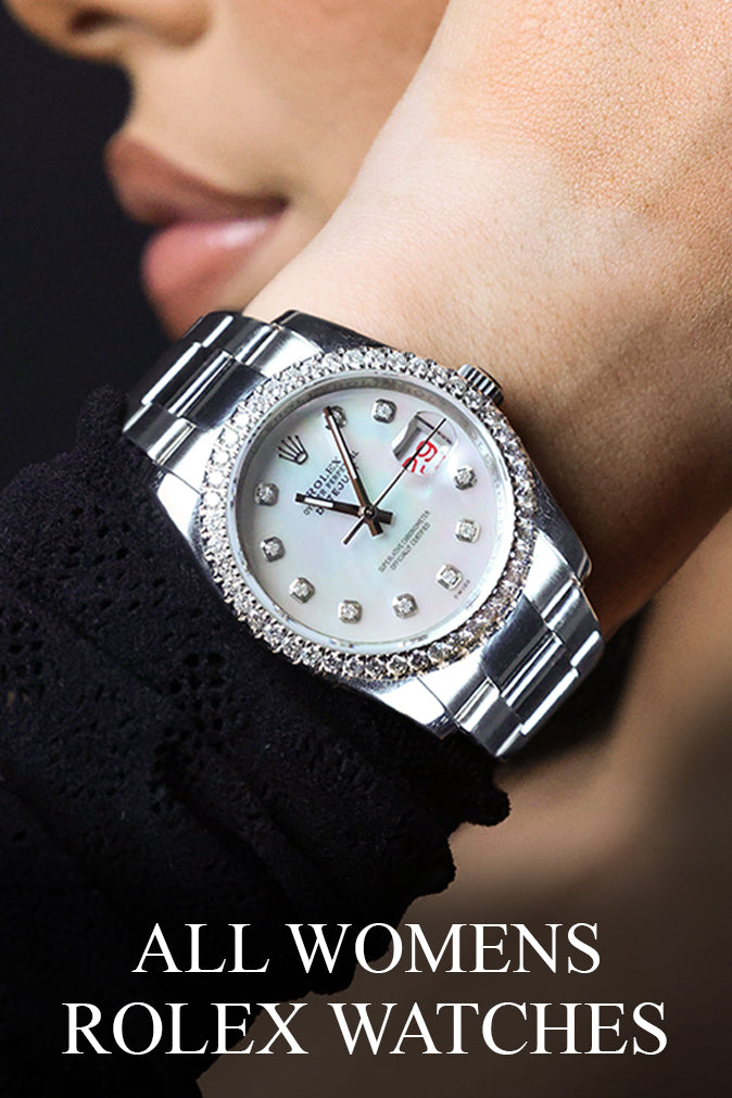 If you’re looking for the perfect gift to give your lady, we carry a gorgeous selection of solid gold women’s jewelry pieces, including chain necklaces, studs, and hoop earrings. We also understand that every woman loves a little wrist bling, so we have an extensive collection of diamond and rose gold watches, as well as luxury women’s Rolex timepieces.