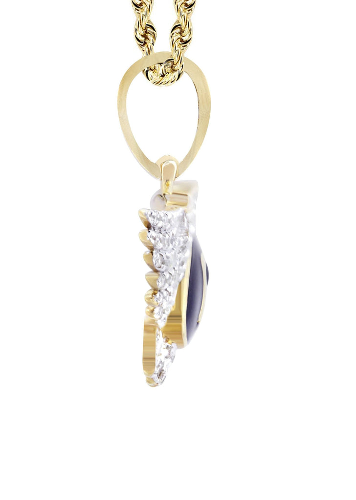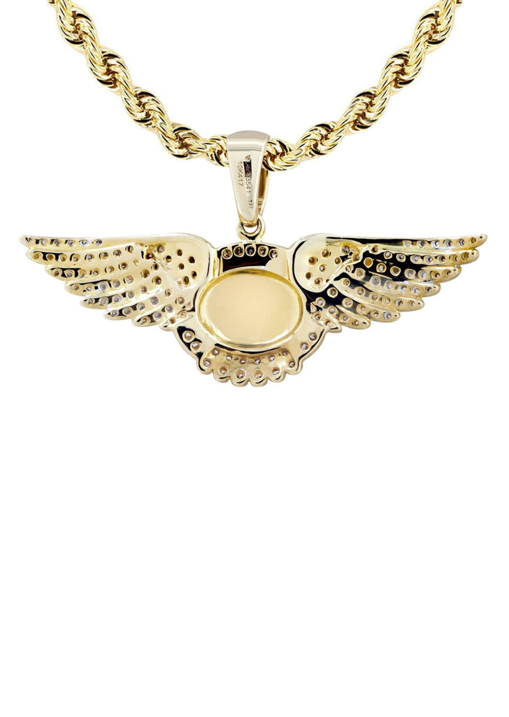 10K Yellow Gold Bentley Pendant & Rope Chain With Approximately 0.54 Carats Of Diamonds. The Pendant Width Is 1.3 Inches And The Length Is 2.25 Inches. The Chain Options Include A 10k Gold Cuban Chain, Franco Or Rope With A Width Of 3mm's And The Length Can Be Selected To Any Preference.