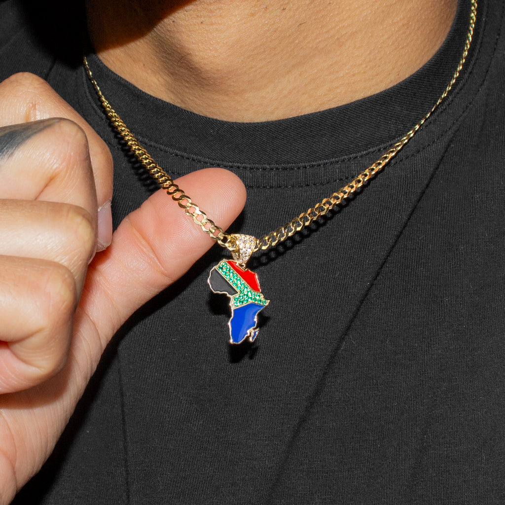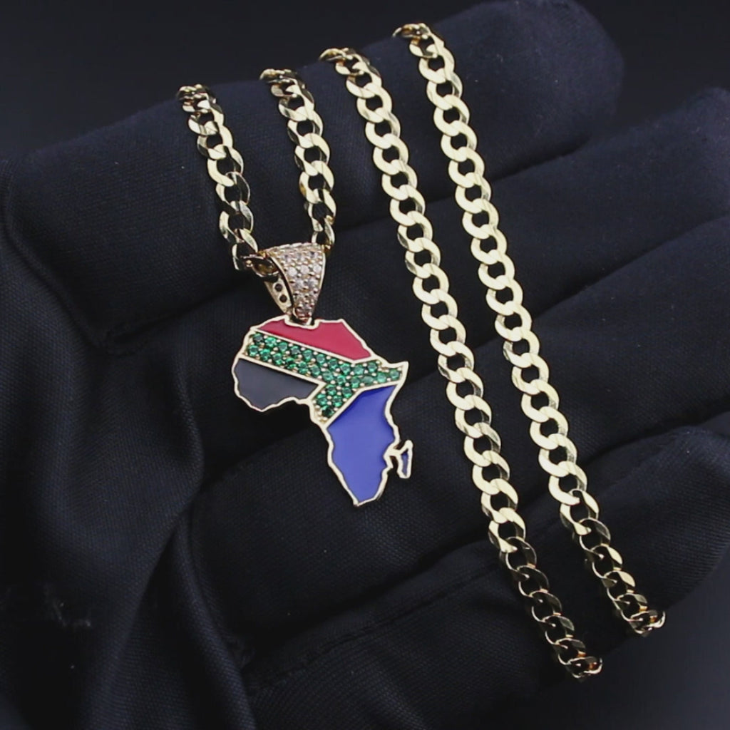 10K Yellow Gold Flag of South Africa Necklace | Appx. 2.2 - 9.2 Grams