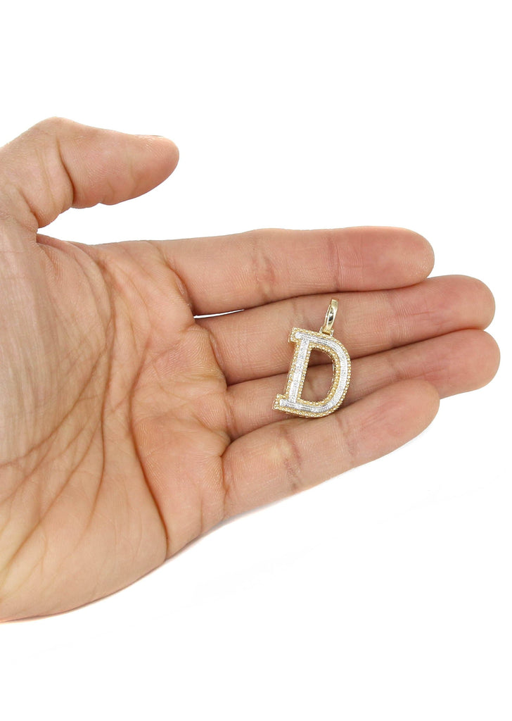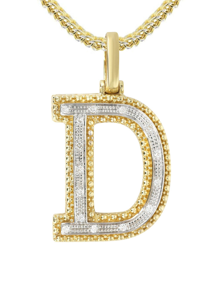 10K Yellow Gold Franco Chain And "D" Pendant With An Approximate Total Gram Weight Of 13. Pendant Weighs 3.3 Grams And The Chain Weighs 10 grams. The Pendant Measurement Is 0.6 Inches In Width And A Length Of 1.2 Inches. The Width Of The Chain Is 3 Mm And The Style Along With The Length Of The Chain Can Be Selected Above.