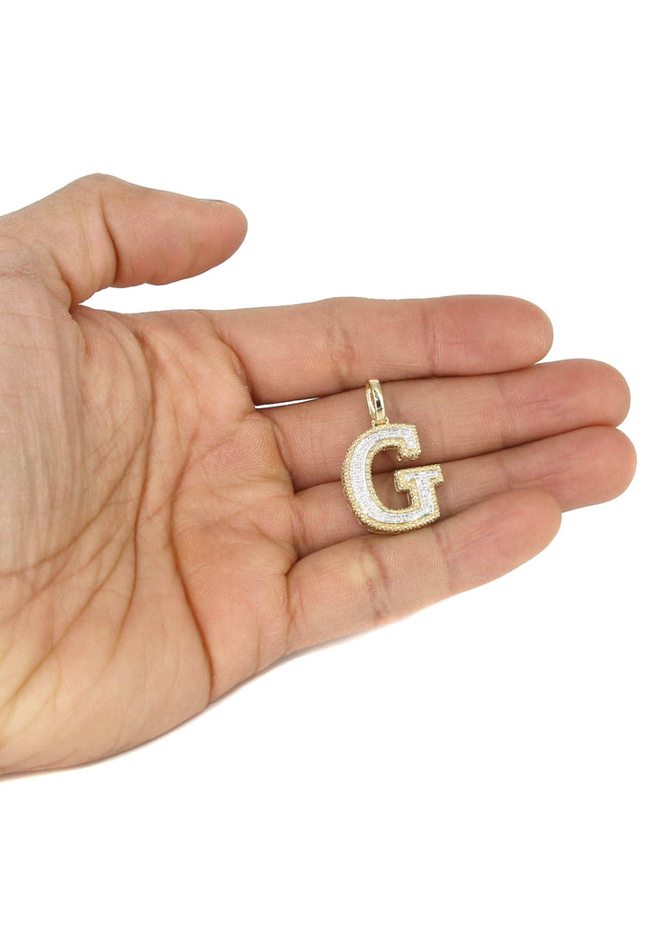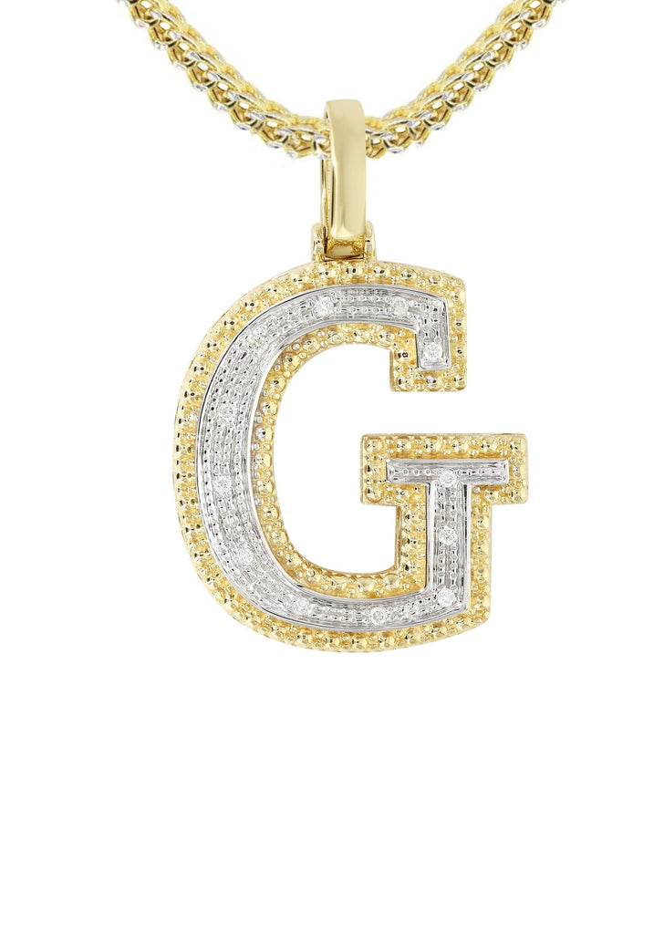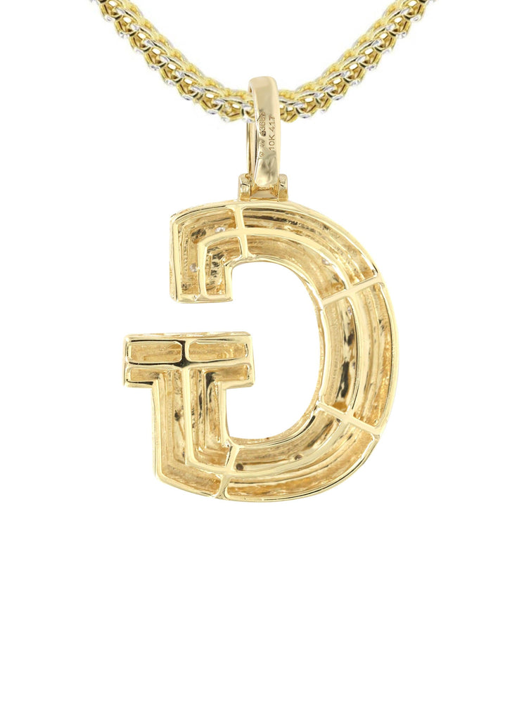 10K Yellow Gold Rope Chain And "G" Pendant With An Approximate Total Gram Weight Of 13.7. Pendant Weighs 3.7 Grams And The Chain Weighs 10 grams. The Pendant Measurement Is 0.8 Inches In Width And A Length Of 1.2 Inches. The Width Of The Chain Is 3 Mm And The Style Along With The Length Of The Chain Can Be Selected Above.